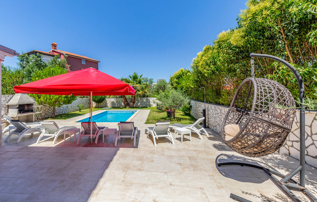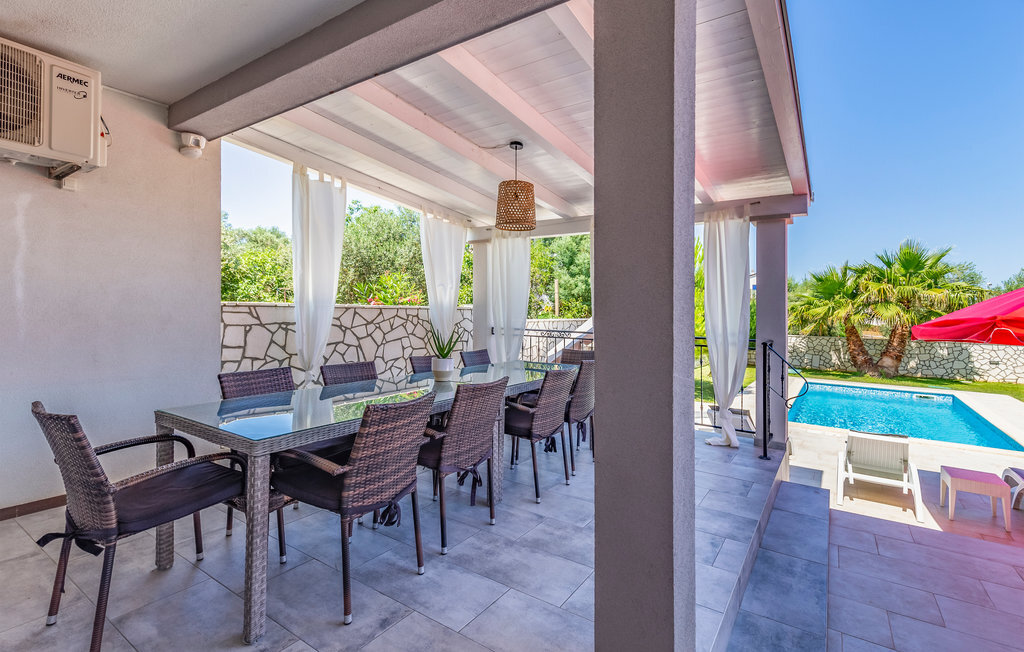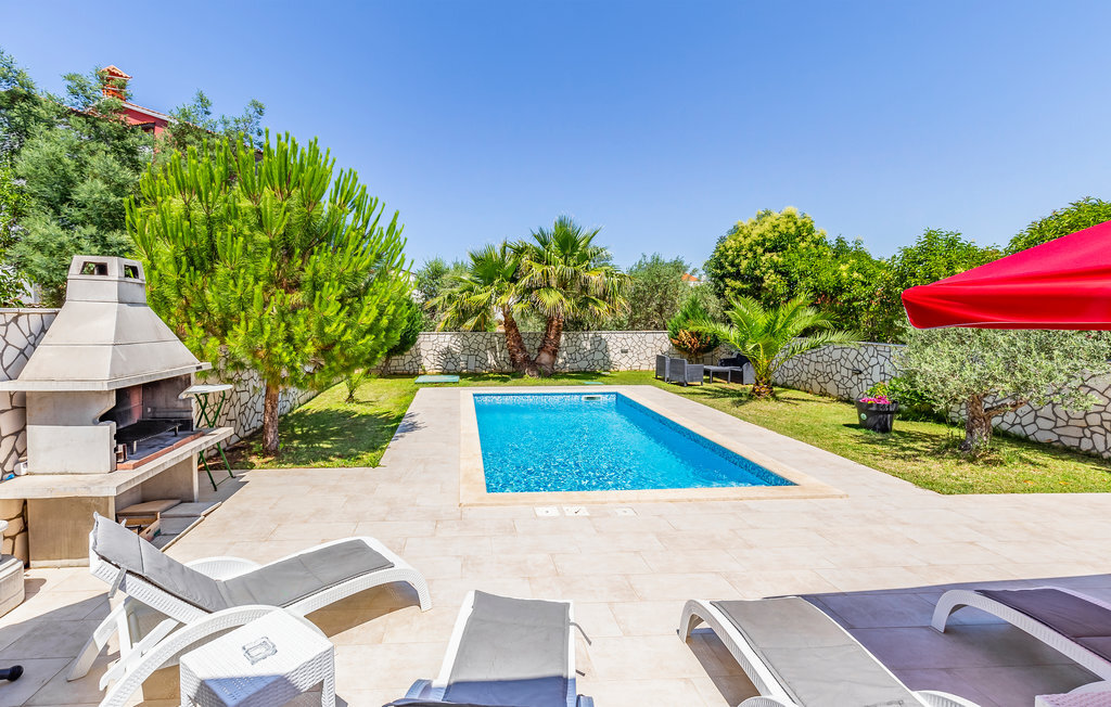 Cette magnifique maison de vacances avec piscine se trouve dans le petit village de Volme, à proximité des sites touristiques populaires de Banjole, Pomer et Premnatura. Sur le terrain clôturé et bien entretenu vous attendent une piscine rafraîchissante ainsi qu'une terrasse sur laquelle vous pourrez faire des barbecues avec votre famille et vos amis et passer des moments insouciants. Au rez-de-chaussée se trouvent un grand salon et une salle à manger avec cuisine, un WC supplémentaire et une chambre à coucher, tandis qu'à l'étage se trouvent trois autres chambres à coucher. Chaque chambre dispose de sa propre salle de bains, d'une télévision et de la climatisation. Le cap de Kamnjak, tout proche, regorge de plages naturelles et de forêts de pins et, pendant les mois d'été, des randonnées nocturnes à vélo sont organisées à la pleine lune.