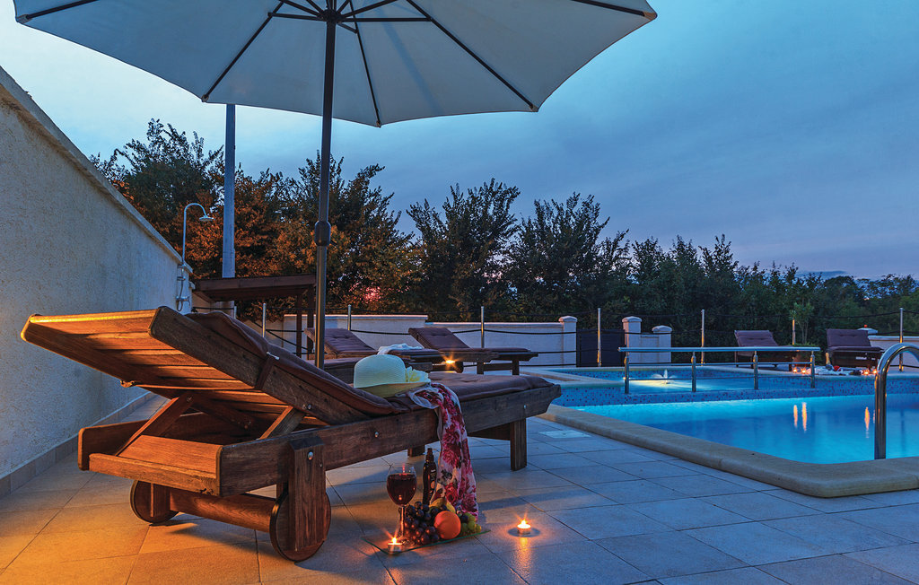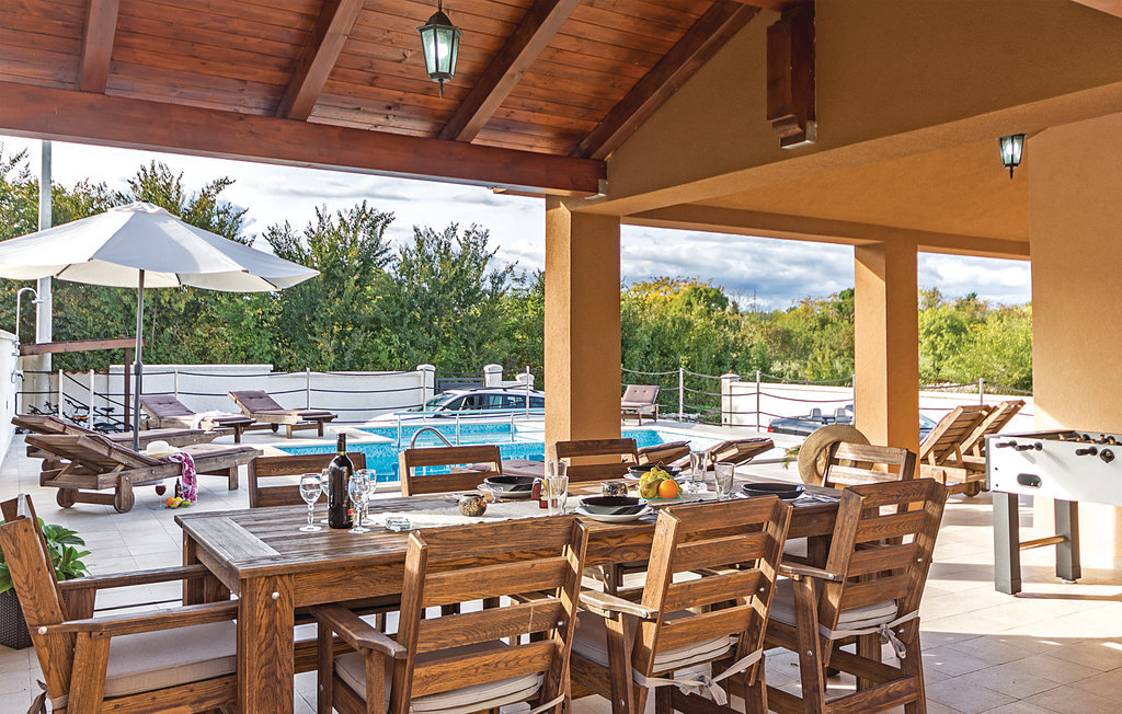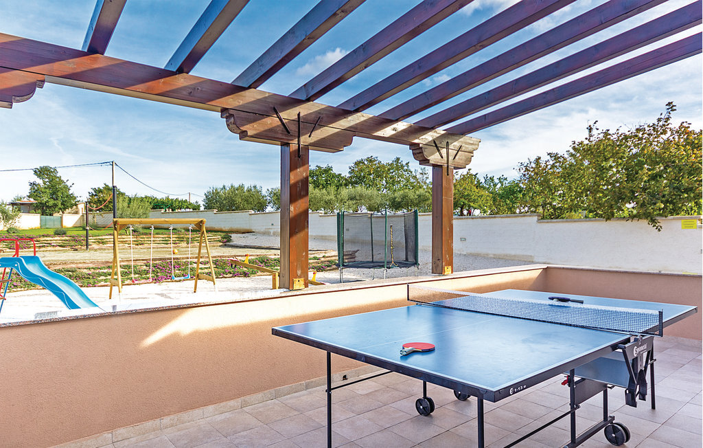 Cette belle maison de vacances située dans le paisible village de Filipana est entourée de verdure et vous offre une atmosphère détendue. Elle est confortablement aménagée et dispose de tout le nécessaire pour un séjour agréable. L'intérieur est moderne et au premier étage se trouvent deux chambres à coucher et une grande salle de bain avec baignoire d'hydromassage. La hauteur de plafond la plus basse est de 160 cm. Au rez-de-chaussée se trouvent encore deux chambres à coucher avec chacune une salle de bain et un salon confortable avec une grande terrasse devant. Vous pouvez préparer de délicieux plats sur le barbecue extérieur pendant que vos enfants jouent sans souci. Une piscine pour enfants se trouve à côté de la piscine. Explorez les environs à vélo et visitez le ranch Barba Tone, ainsi que le parc d'adrénaline Glavani.