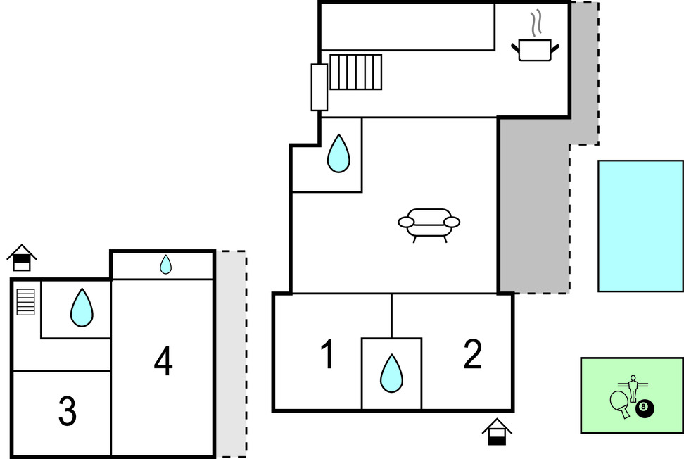 Location de vacances avec activités : Cette location de vacances comprend un ou plusieurs équipements de loisir (ping-pong, billard, baby-foot...)