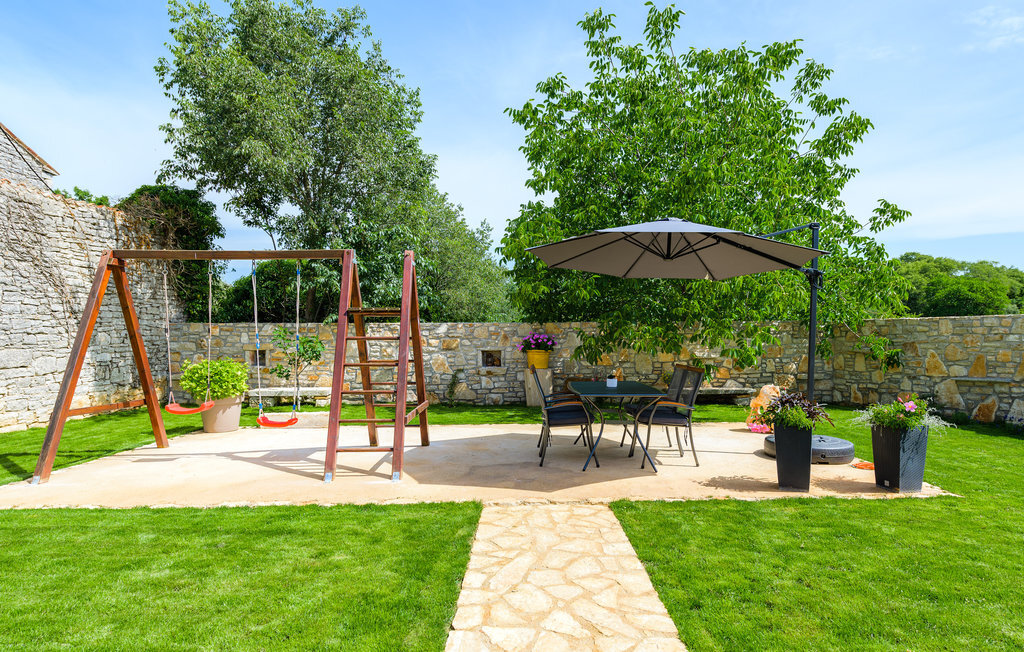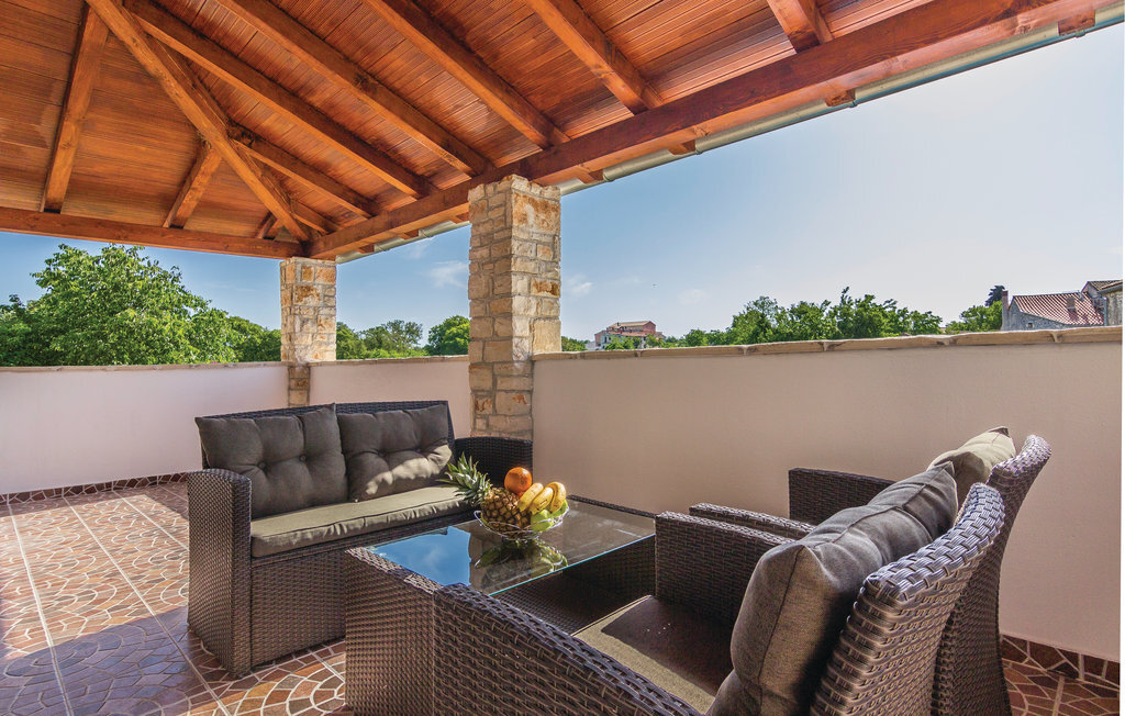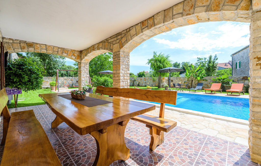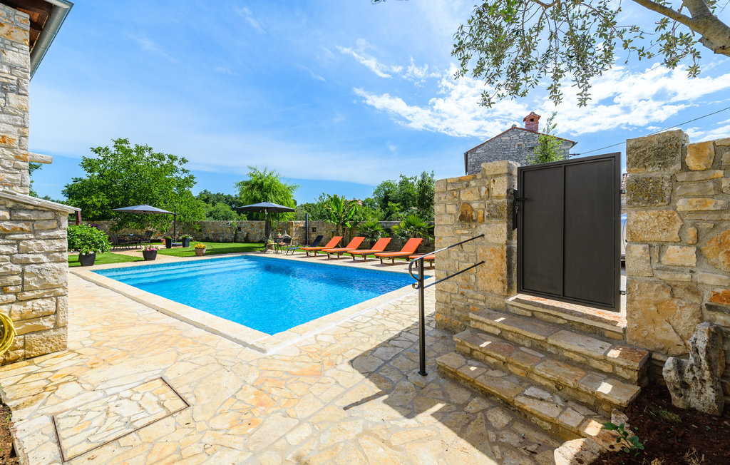 Cette maison de vacances traditionnelle avec piscine a été autrefois rénovée et aménagée de manière contemporaine. Elle est située dans le petit village d'abrunii, à environ 8 km de Vodnjan et 17 km de Pula. Ils disposent d'un rez-de-chaussée, d'un 1er et d'un 2e étage. La hauteur minimale du plafond dans les combles est de 150 cm. Au rez-de-chaussée se trouvent le salon avec la cuisine et la salle à manger, tandis que vous accédez aux étages supérieurs par des escaliers extérieurs. La chambre à coucher n° 1, au premier étage, dispose de sa propre entrée séparée. Près de la maison, il y a plusieurs terrasses et deux zones de jardin. Dans la petite partie, devant la maison, il y a une cheminée extérieure, la piscine et la terrasse ensoleillée se trouvent dans la cour arrière.