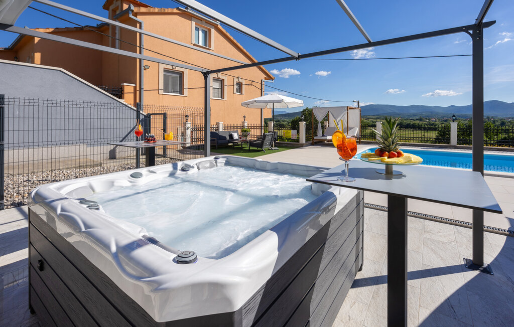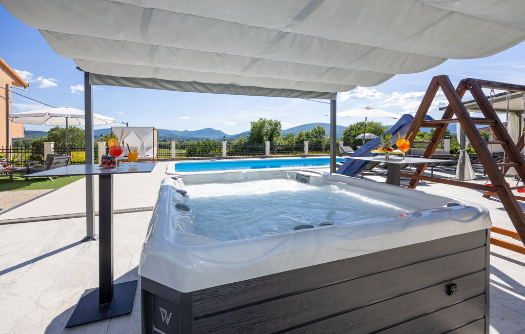 Bien-être à l'extérieur : Location de vacances disposant de chaises-longues et d'un ou plusieurs équipements tels que piscine extérieure, jacuzzi extérieur, lit à baldaquin de jardin etc...