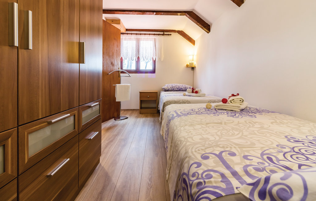 Cette maison de vacances se trouve dans le village de Sv. Kirin, et au milieu de la verdure, elle offre d'agréables moments dans la nature. A l'ombre des pins, vous pourrez passer des moments de détente en famille sur la terrasse. Un escalier raide mène à l'étage supérieur. Visitez Svetvicenat, une destination touristique populaire qui propose des événements médiévaux divertissants. La ville romaine de Pula vous émerveillera par son histoire. En tant que centre culturel et touristique de l'Istrie, la ville vous laissera un souvenir inoubliable.