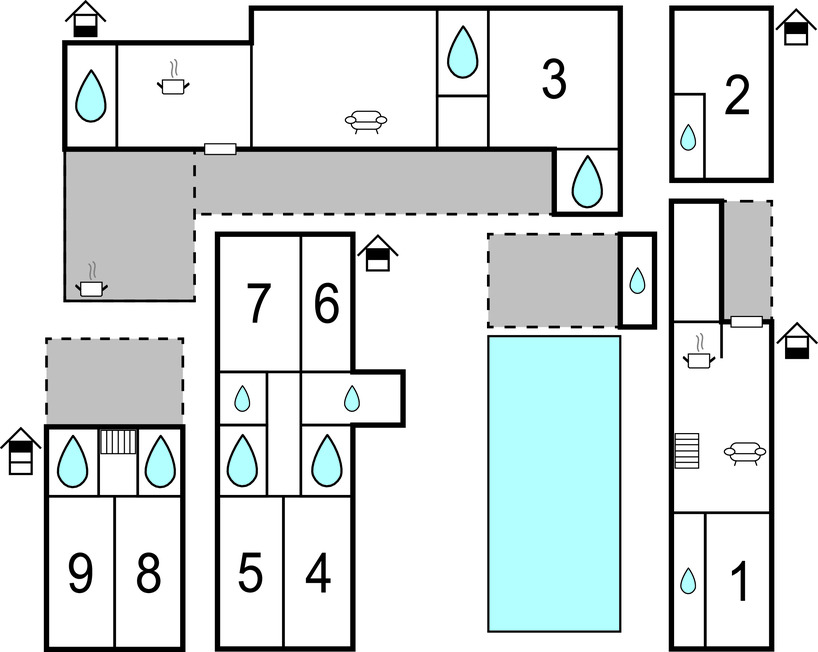 Internet : Location avec connexion internet. L’accès internet peut être limité à un certain nombre de GB. Si la connexion internet est uniquement disponible moyennant un supplément, cela est indiqué dans la description de la maison sous « Installations ».