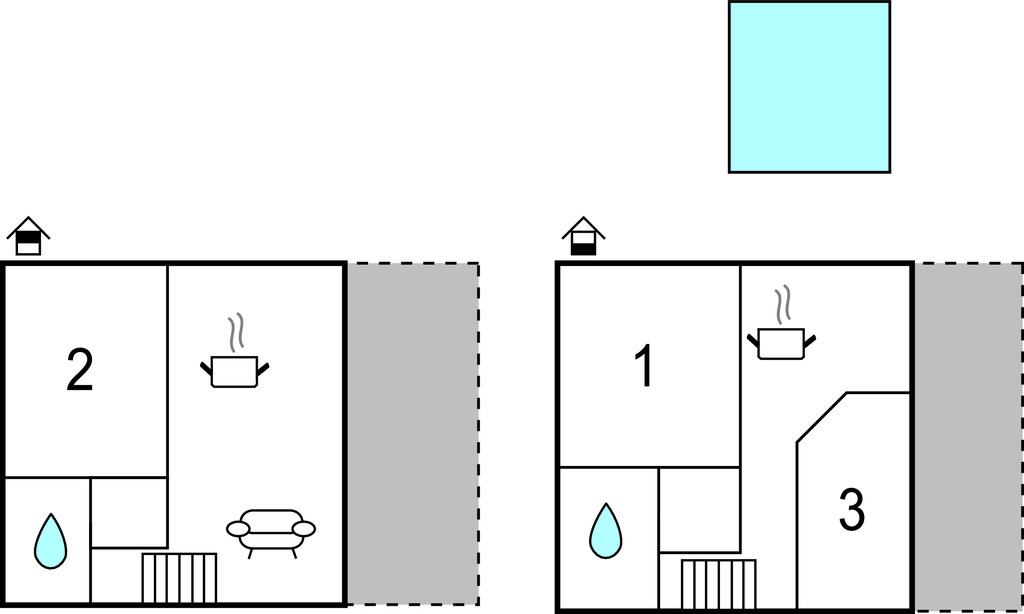 L'intérieur aménagé avec goût se divise en deux unités d'habitation qui se trouvent au rez-de-chaussée et au premier étage et qui sont reliées par un escalier extérieur. Les deux unités d'habitation disposent d'une terrasse privée sur laquelle vous pouvez savourer votre café du matin. Laissez les enfants se défouler sur le terrain clôturé pendant que vous préparez de bons petits plats au barbecue. Dans le jardin, vous trouverez également un jacuzzi qui vous invite au bien-être et à la détente. Une route en gravier d'environ 150 m mène à la maison.