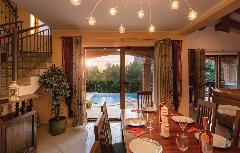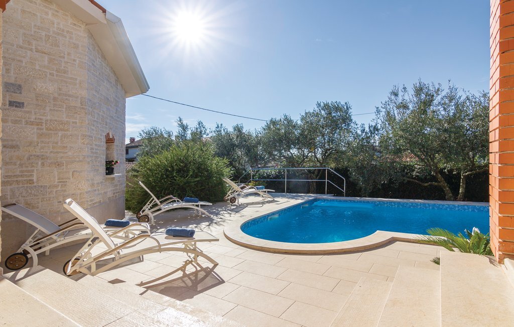 Cette belle maison de vacances avec piscine se trouve dans la jolie ville de Vabriga, sur la côte. Vabriga est une localité proche d'un centre touristique. La maison datant de 2012 est très moderne et confortablement aménagée, ce qui en fait le choix idéal pour vos vacances. Au rez-de-chaussée se trouvent un grand salon, une salle à manger, une cuisine, deux chambres à coucher avec chacune une salle de bain et un WC supplémentaire. Au premier étage se trouvent une autre chambre, une salle de bain et une salle d'activités. La maison vous offre une ambiance agréable et vous avez l'avantage d'être à la plage en 10 minutes à pied environ. La célèbre ville touristique de Porec n'est qu'à 10 minutes en voiture. Profitez des nombreuses offres de divertissement et des manifestations culturelles de la ville de Porec.