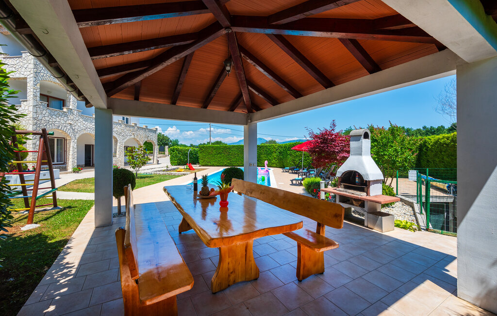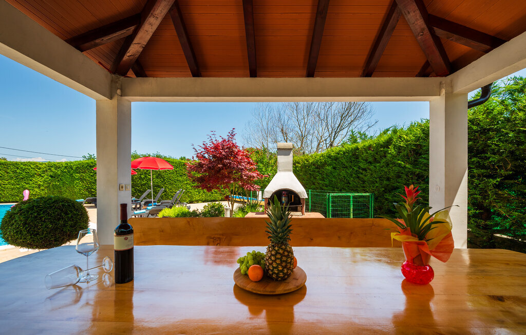 Passez des vacances reposantes dans un village tranquille d'Istrie, loin de l'agitation quotidienne. Cette maison de vacances spacieuse offre les conditions idéales pour des journées de détente en famille ou entre amis. La maison de vacances se compose de deux unités d'habitation aménagées avec goût au rez-de-chaussée, avec des entrées séparées. Détendez-vous dans le salon agréablement aménagé avec accès direct au jardin ou préparez vos repas ensemble dans la cuisine pratique. Passez des soirées conviviales autour de la table à manger ou devant la cheminée rustique et amusez-vous aussi en jouant au baby-foot, aux fléchettes ou au ping-pong.