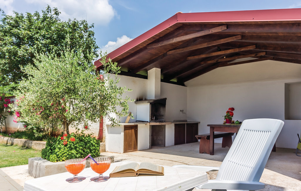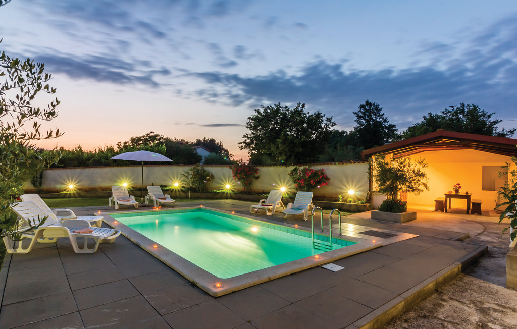 Cette belle maison de vacances avec piscine, entourée de plantes méditerranéennes, se trouve à egotici, près de Duga Uvala. Devant la maison se trouve un puits traditionnel istrien qui jouait autrefois un rôle important dans l'approvisionnement en eau, mais qui ne sert plus aujourd'hui que de souvenir des temps passés. La maison est joliment et confortablement aménagée et se compose d'une cuisine, d'un salon, de deux salles de bains et de trois chambres. Dans le jardin bien aménagé, vous trouverez la piscine et une terrasse couverte où vous pourrez passer des soirées agréables avec votre famille ou vos amis. Les plages les plus proches se trouvent à Duga Uvala. Ne manquez pas de visiter la ville antique de Pula avec ses nombreux monuments culturels et historiques, ses musées et ses galeries qui valent le détour. Pour les excursions d'une journée, nous vous recommandons le parc national sur l'île de Brioni, qui vous enchantera par sa nature magnifique.