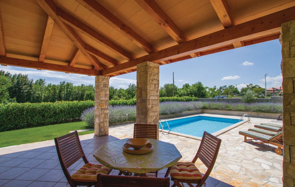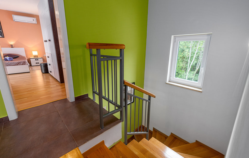 Belle maison de vacances sur un grand terrain partagé avec la maison CIO009. Les deux maisons partagent l'entrée, un terrain de basket-ball, une pelouse pour le badminton, le volley-ball, le football et une aire de jeux pour enfants, mais elles sont suffisamment éloignées l'une de l'autre et séparées par une haie verte pour leur propre intimité, ce qui est idéal pour le séjour de deux grandes familles ou groupes d'amis. Dans le jardin, il y a une terrasse couverte où vous pouvez passer des moments agréables à l'ombre. Il y a également une piscine extérieure, idéale pour se rafraîchir les chaudes journées d'été. Les pièces sont aménagées de manière très moderne et fonctionnelle, avec des meubles confortables. Vous habitez ici dans le village de Kunj, à seulement 8 km de Labin. Cette ville médiévale est également connue comme ville des artistes. Des expositions et des concerts de musique classique y sont organisés en plein air. Visitez les konobas de la région et goûtez aux délicieux plats et vins locaux, afin de découvrir le pays, ses habitants et sa gastronomie. Visitez également le village populaire de Rabac à proximité, où vous trouverez de belles plages.