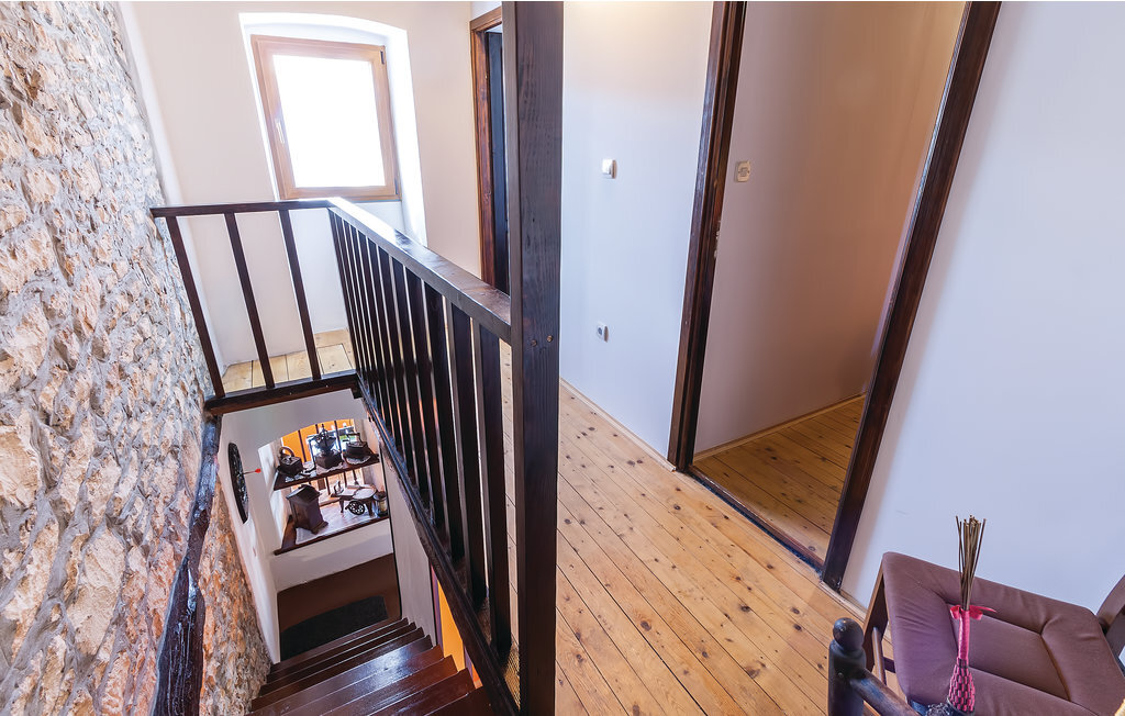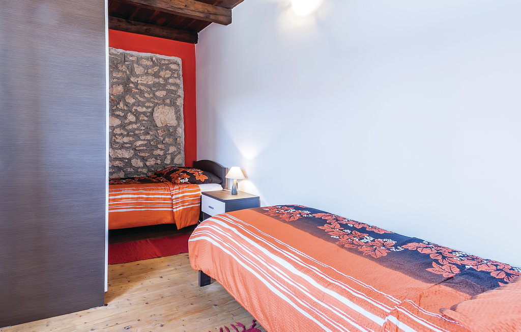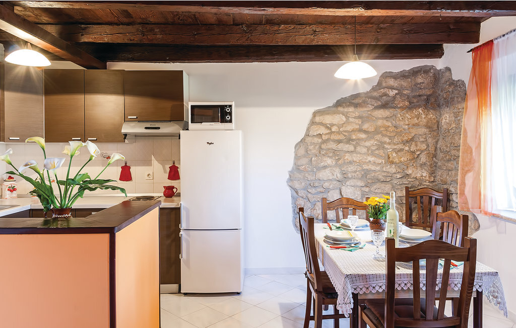 Cette maison jumelée se trouve dans un endroit calme du village de Krnica. L'intérieur est entièrement aménagé dans un style authentique et vous offre la possibilité de passer vos vacances dans une maison traditionnelle avec des éléments du standard de vie actuel. La salle de séjour avec cuisine et salle de bain se trouve au rez-de-chaussée, tandis que deux chambres à coucher se trouvent à l'étage. Sur le terrain clôturé, une belle terrasse vous attend, sur laquelle vous pourrez déguster des spécialités grillées. À quelques kilomètres seulement, vous trouverez de magnifiques criques et plages cachées. Krnica est un endroit calme sur une colline au-dessus de la mer, entouré de forêts, de pâturages et de vignobles. Visitez également d'autres endroits de cette région comme Mutvoran, Bucht Bla, Rakalj et le belvédère de Sainte-Agnès avec une vue magnifique sur la baie de Raa, la ville de Labin et les îles du Kvarner.