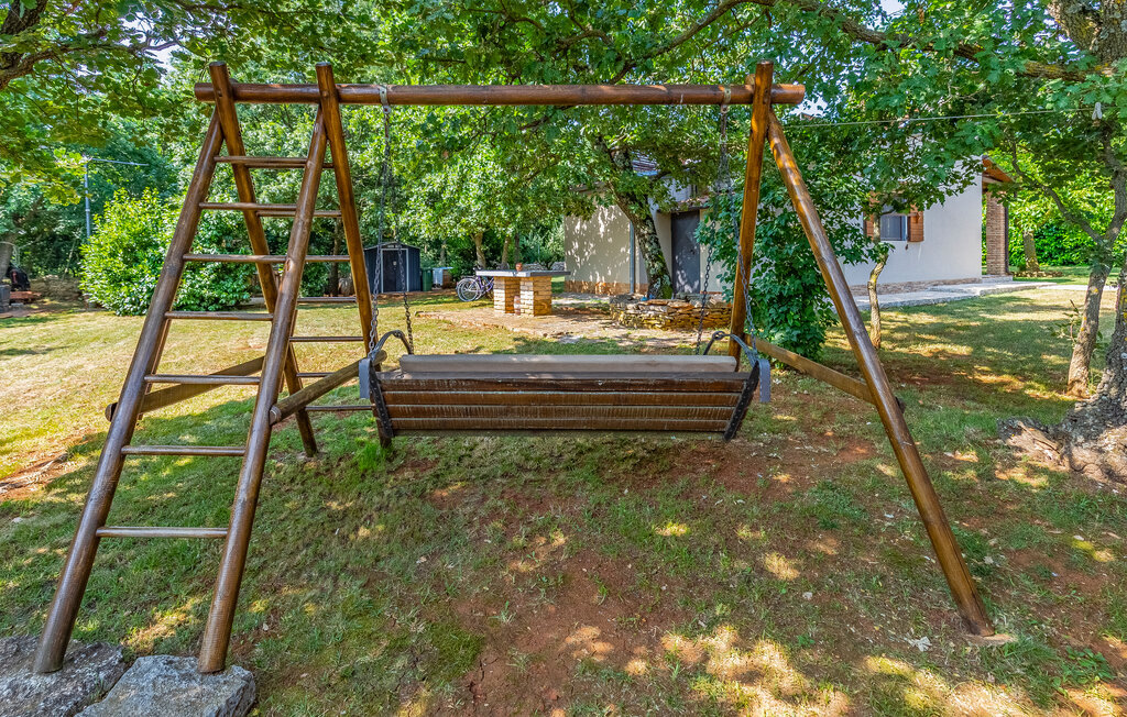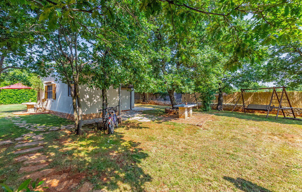 Cette maison de vacances agréable et joliment aménagée avec une source d'énergie renouvelable est le choix idéal pour tous ceux qui souhaitent passer leurs vacances dans la verdure. Elle dispose d'un grand terrain clôturé, plein de fleurs et de jeux où vos enfants pourront se défouler, ainsi que d'une piscine. Deux vélos sont également à votre disposition pour explorer les environs. L'électricité et l'eau chaude sont fournies par une installation solaire. La station balnéaire de Duga Uvala avec ses magnifiques plages se trouve à proximité. Visitez la ville de Pula, la plus grande ville de la péninsule istrienne, connue pour sa longue histoire et ses sites culturels comme l'amphithéâtre et le temple d'Auguste, ou profitez de la beauté naturelle et de la richesse de la flore et de la faune du parc national de Brijuni.