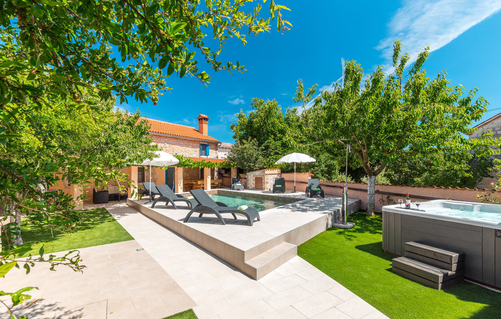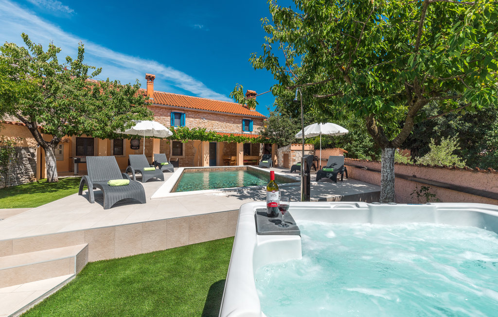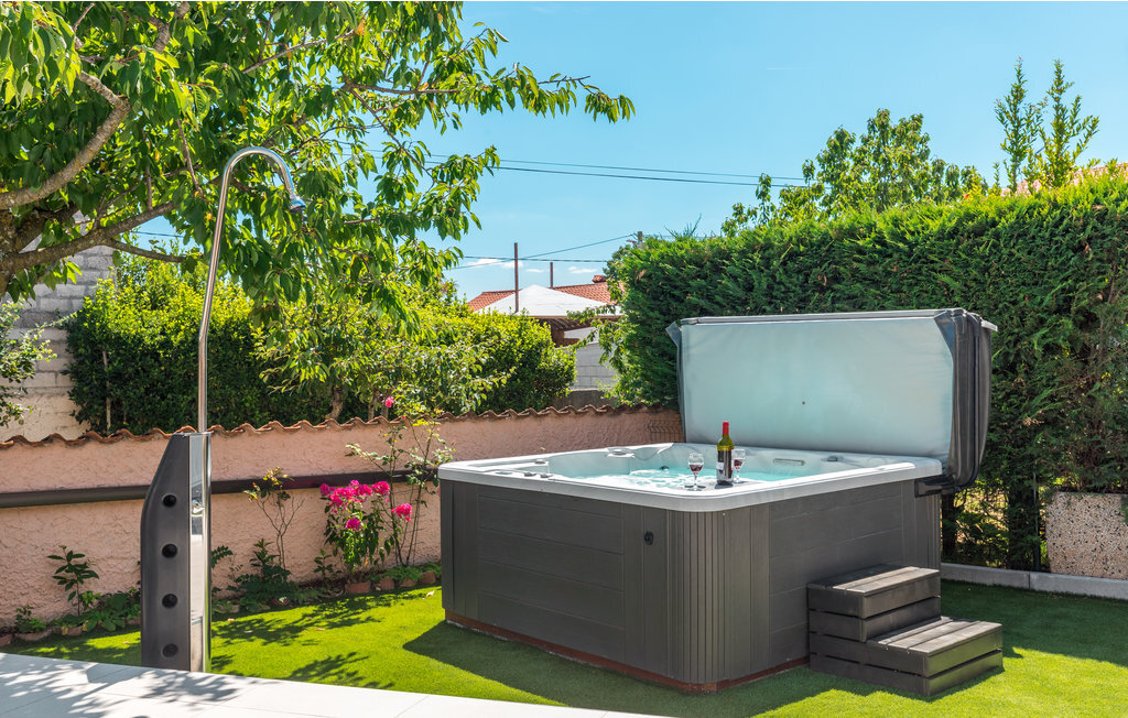 Bien-être à l'extérieur : Location de vacances disposant de chaises-longues et d'un ou plusieurs équipements tels que piscine extérieure, jacuzzi extérieur, lit à baldaquin de jardin etc...