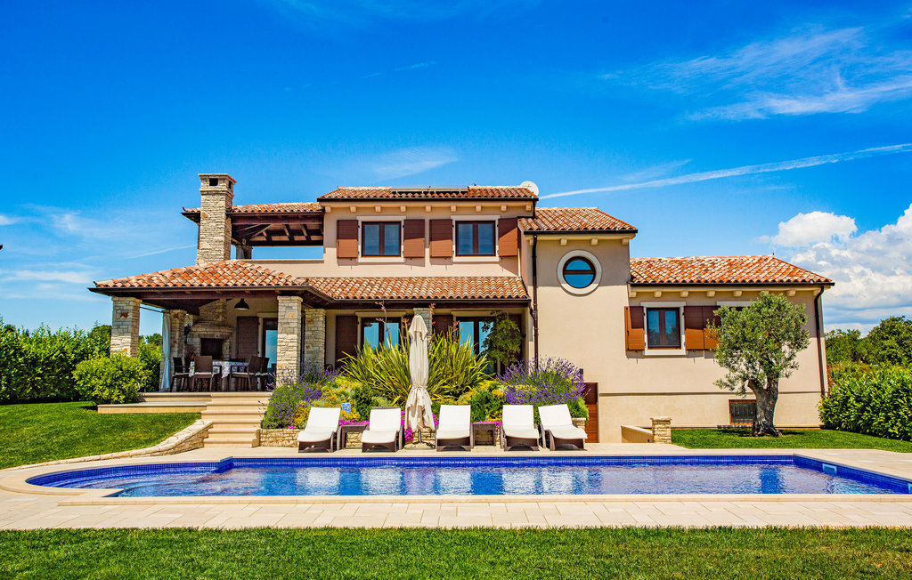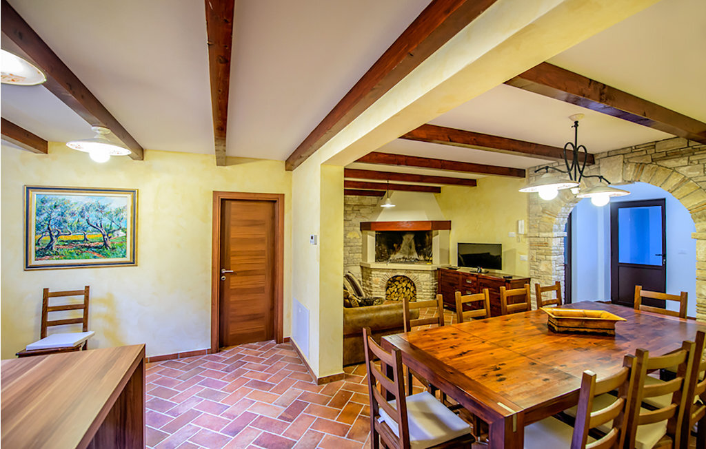 Cette belle maison de vacances avec piscine se trouve dans le petit village de Galiana, à proximité de la ville de Pula. L'intérieur bien aménagé avec style offre à ses hôtes une atmosphère de bien-être particulière. Au sous-sol spacieux se trouve une salle de séjour supplémentaire avec cuisine et une chambre à coucher avec salle de bain privée. Au rez-de-chaussée, vous trouverez une salle de séjour avec cuisine, une salle de bain et deux chambres à coucher, tandis qu'à l'étage, il y a deux chambres à coucher, dont l'une est une chambre de passage, idéale pour les parents avec de jeunes enfants. Le jardin est idéal pour que les enfants puissent jouer, et pendant les chaudes journées d'été, vous pourrez vous rafraîchir dans la piscine. Préparez vos délices au barbecue sur la terrasse couverte. Il est recommandé de visiter la ville de Pula, qui regorge de monuments antiques tels que l'amphithéâtre romain, où se déroulent des événements intéressants comme le Pula Film Festival, d'où vous pourrez ramener de beaux souvenirs d'un film sous un ciel étoilé.