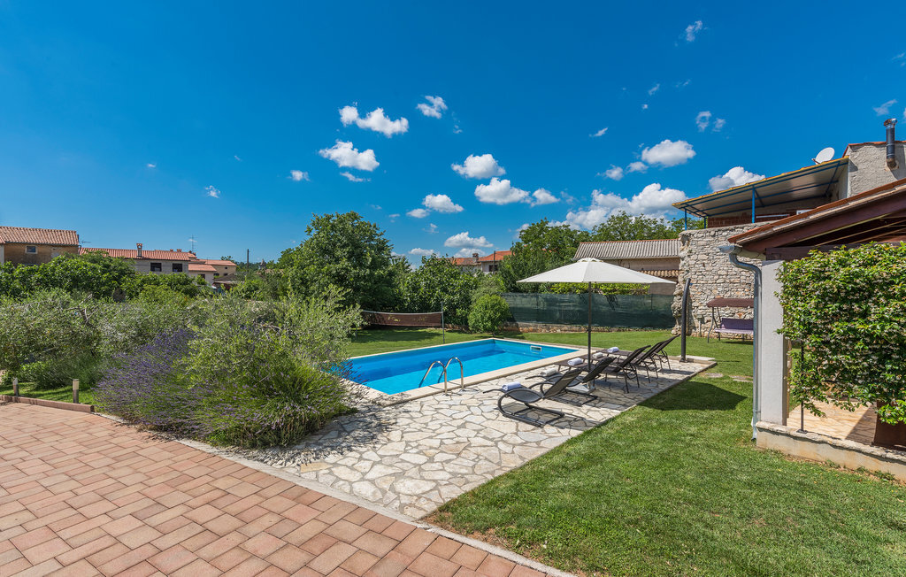Cette maison de vacances se trouve dans la vieille ville d'une petite localité d'Istrie. La situation de l'objet offre plusieurs avantages : de la découverte de l'Antiquité aux boutiques, cafés et restaurants. Le logement s'étend sur le premier étage de la maison. Il dispose d'une cuisine entièrement équipée, d'un salon climatisé, de deux chambres à coucher et d'une salle de bain.L'intérieur est aménagé de manière haut de gamme. Le grand terrain clôturé vous offrira des moments de détente au bord de la piscine.