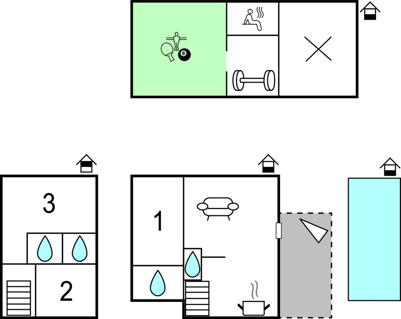 Location de vacances avec activités : Cette location de vacances comprend un ou plusieurs équipements de loisir (ping-pong, billard, baby-foot...)