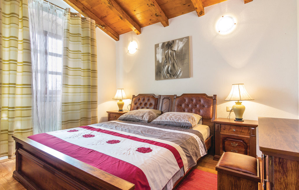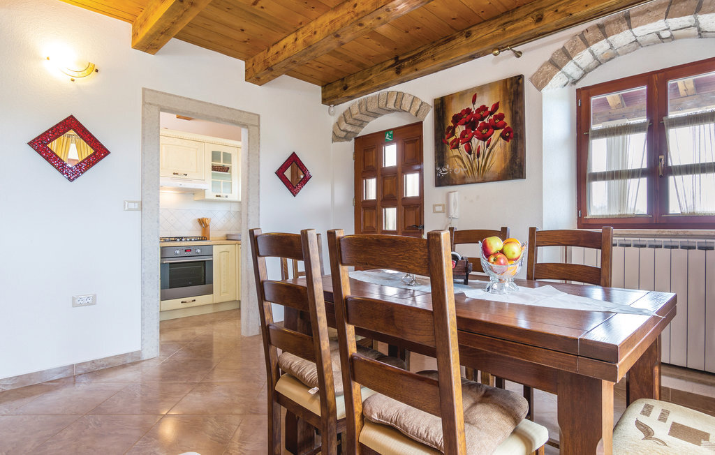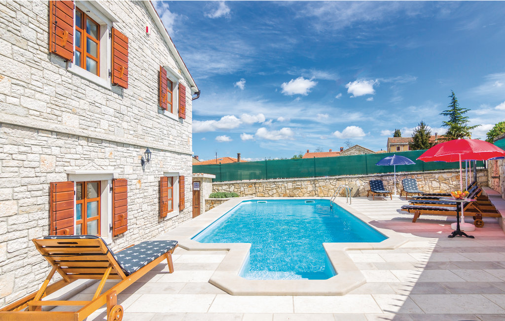 Venez vous détendre au cœur de l'Istrie, dans un village tranquille sans tourisme de masse ni agitation urbaine. La célèbre station balnéaire de Rovinj se trouve à environ 17 km. Vous habitez ici dans une magnifique maison de vacances ! Sur le terrain, vous trouverez non seulement la piscine, mais aussi de nombreuses plantes vertes qui vous gâteront avec leur arôme méditerranéen et offriront ainsi un repos au corps et à l'âme. Lors de la construction de la maison, chaque détail a été pris en compte et chaque pierre de la maison a été travaillée à la main. Au rez-de-chaussée se trouve la terrasse couverte, où vous pourrez vous détendre et paresser toute la journée. En entrant dans la maison, vous verrez la cheminée et la grande salle à manger. Il y a aussi une cible de fléchettes. En outre, au rez-de-chaussée se trouvent la cuisine, deux chambres à coucher et la salle de bain. Au premier étage, vous avez deux autres chambres et deux salles de bains avec une belle vue sur la piscine et un grand espace de détente. Visitez le village de Zminj et, dans les environs, les nombreux agrotourismes où vous pourrez déguster de délicieux plats.