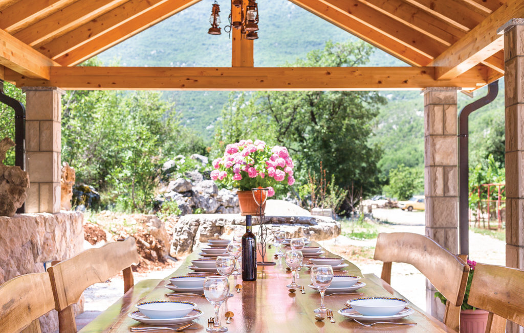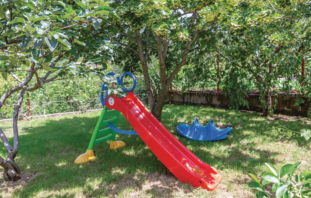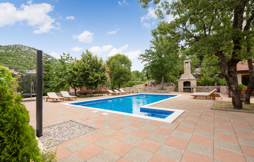 Passez vos vacances dans cette belle maison de vacances, composée de deux unités d'habitation séparées, reliées par des escaliers extérieurs. Elle est située dans un petit village tranquille de l'arrière-pays dalmate et dispose d'une belle vue sur le parc naturel de Biokovo. Les deux unités d'habitation se composent de trois chambres à coucher, de deux salles de bain et d'une cuisine avec salon, la salle d'activités se trouvant au rez-de-chaussée. Sur le terrain bien entretenu, entouré d'arbres fruitiers, se trouve l'aire de jeux pour enfants , différents contenus pour des vacances actives, ainsi qu'une terrasse couverte avec barbecue. Le soleil, la plage et la mer vous attendent sur la célèbre Riviera de Makarska. Hauteur minimale du plafond 150 cm.