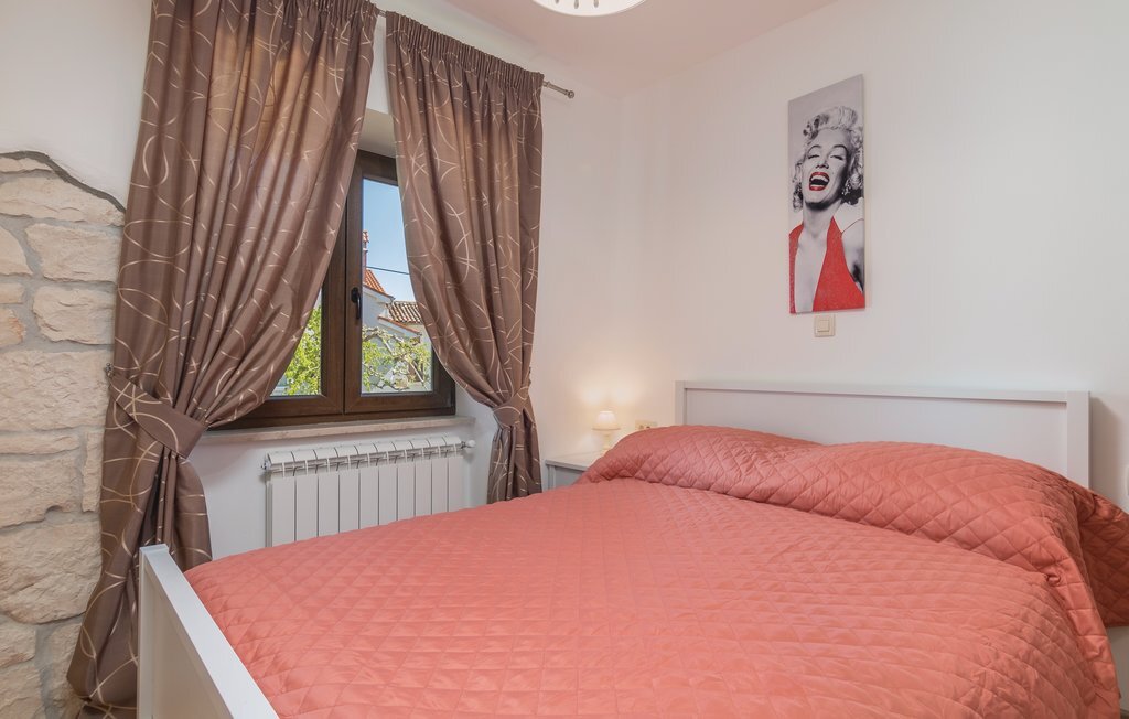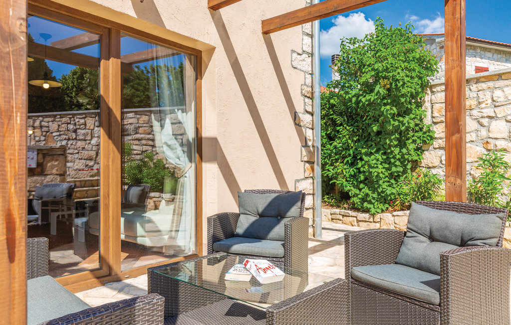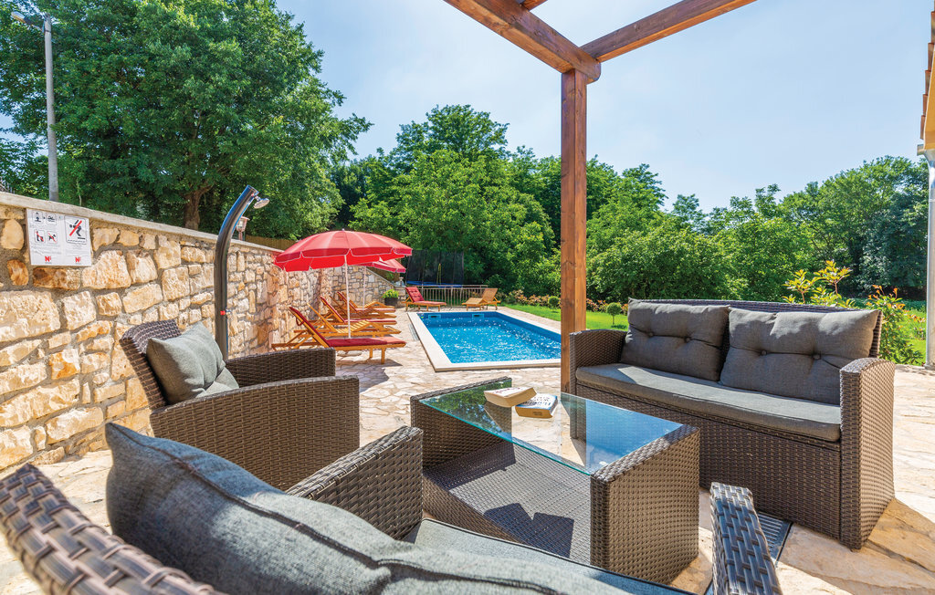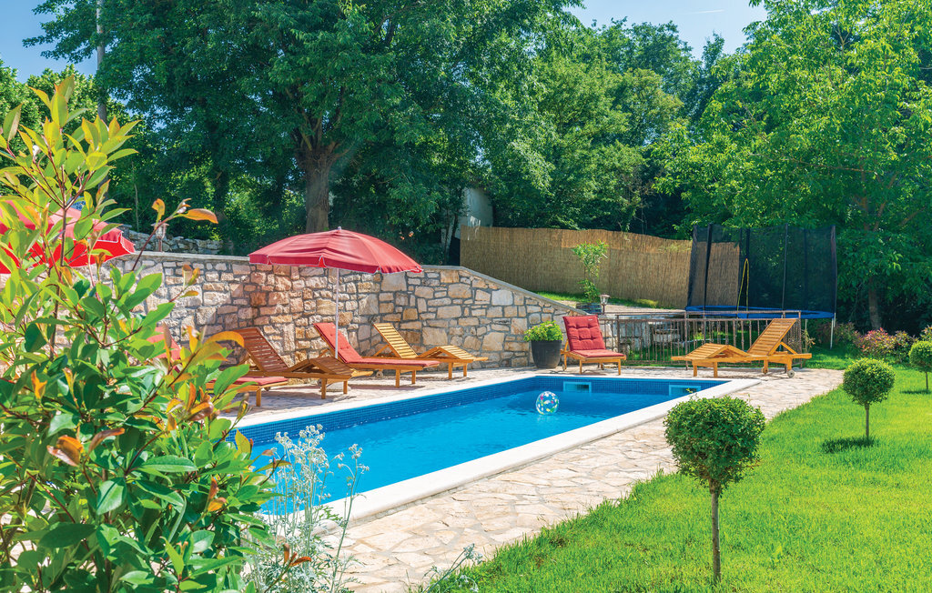 Dans le petit village de Jurii se trouve cette maison traditionnelle en pierre, qui a été entièrement rénovée et modernisée en 2017. Cette maison de vacances confortable dispose de pièces au rez-de-chaussée et au premier étage et d'une belle piscine extérieure. Le soir, vous pourrez vous détendre avec un verre de vin sur la belle terrasse couverte. Pour ceux qui souhaitent rester actifs même en vacances, la salle d'activités est à disposition. L'inclinaison du toit dans la chambre 1 atteint 140 cm. Visitez Rabac et ses magnifiques plages de galets, ainsi que la ville historique de Labin, où des manifestations culturelles estivales sont organisées.