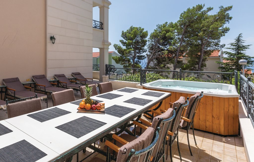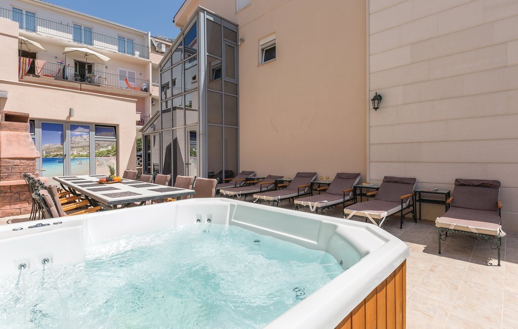 Bien-être à l'extérieur : Location de vacances disposant de chaises-longues et d'un ou plusieurs équipements tels que piscine extérieure, jacuzzi extérieur, lit à baldaquin de jardin etc...