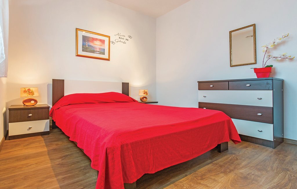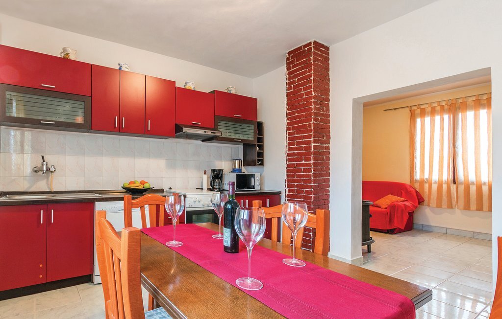 Petite maison de vacances dans un endroit calme en dehors de la ville de Pula. Les stations balnéaires de Medulin, Premantura et Banjole sont rapidement accessibles en voiture. La maison est aménagée de manière pratique et fonctionnelle, elle dispose d'un salon climatisé, d'une cuisine équipée, de deux chambres à coucher, d'une salle de bain ainsi que d'une terrasse ouverte. Sur le terrain clôturé se trouvent un barbecue et un arbre ombragé où vous pourrez préparer de délicieux repas pour toute la famille. Les superbes plages rocheuses de la localité de ian (environ 10 km), avec une vue magnifique sur la mer ouverte, promettent de pures joies de la baignade pour tous les "rats d'eau". Pour les amateurs de culture, nous recommandons une visite de Pula avec l'amphithéâtre ainsi qu'une visite guidée des tunnels "Zerostrasse" qui servaient d'abris antiaériens pour les habitants pendant la Première Guerre mondiale et qui traversent tout Pula. Ensuite, vous pouvez vous rendre à la forteresse Katel dans la vieille ville, où se trouve aujourd'hui le musée d'histoire et d'où s'étend l'une des plus belles vues sur la ville et la baie de Pula".