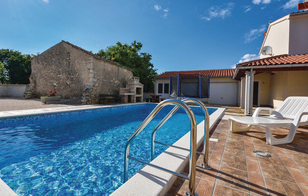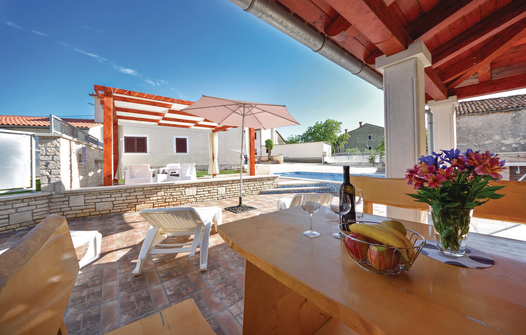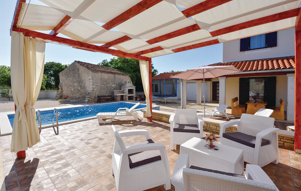 Cette charmante maison de vacances se trouve dans le petit village de Rebii, près de Barban. La maison jumelée est équipée de manière fonctionnelle et dispose d'un jardin privé, de jeux, d'une piscine et d'un barbecue - bref, tout ce qu'il faut pour passer des vacances inoubliables avec toute la famille. Il y a une terrasse couverte, d'où vous avez une vue sur le beau jardin et la piscine. A proximité immédiate se trouve la maison CIC190, idéale si vous cherchez un autre logement. Dans cette région, les vacanciers actifs peuvent profiter de la nature unique. Dans la ville voisine de Pula, de belles plages et des activités culturelles variées vous attendent.
