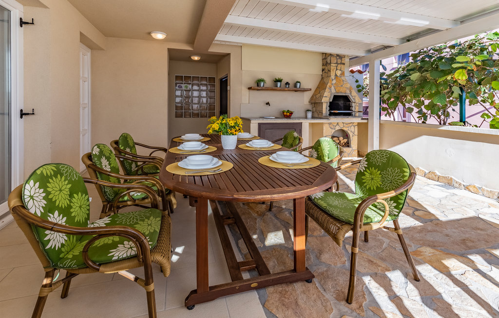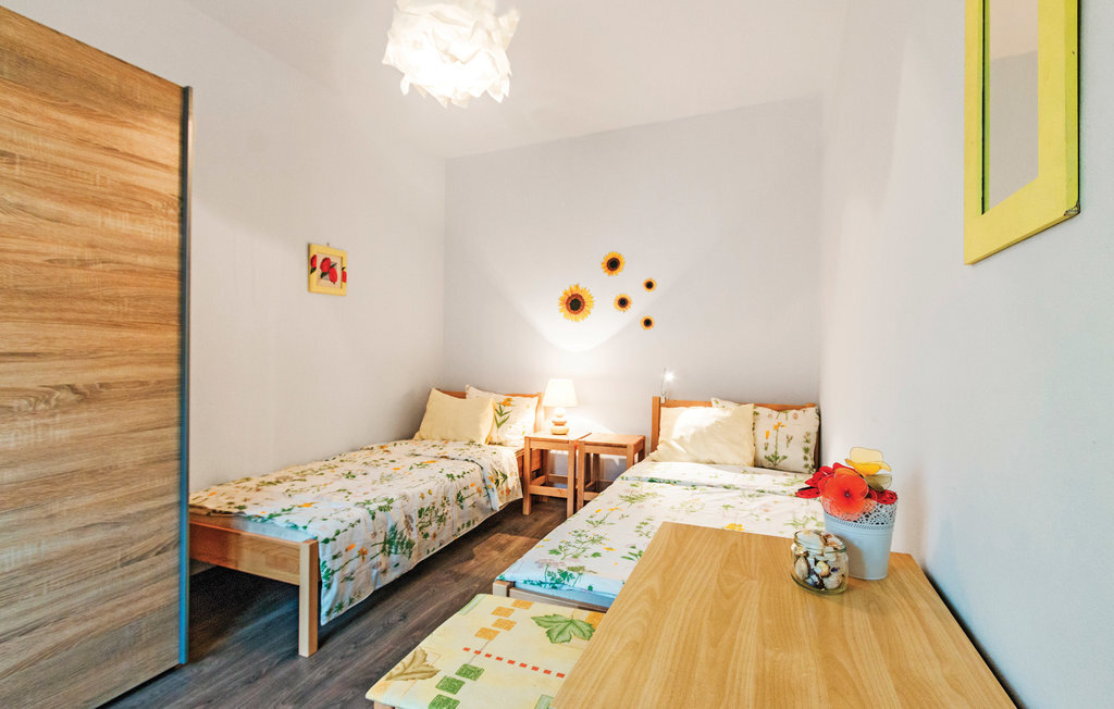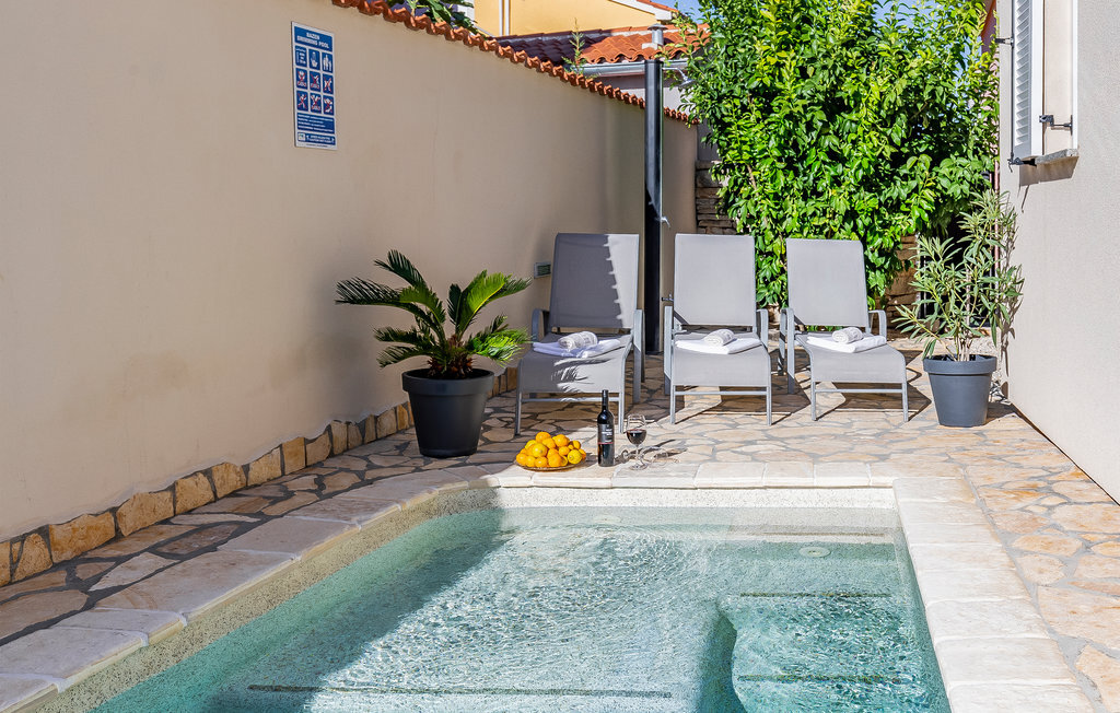 Cette maison jumelée confortablement aménagée se trouve dans le paisible village de Betiga, une partie de Barbariga. Les deux appartements ont des entrées séparées, ils conviennent donc à deux familles ou amis. Le rez-de-chaussée dispose d'un petit appartement avec une chambre à coucher, tandis que l'étage supérieur abrite l'appartement avec deux chambres. Vous trouverez de quoi vous rafraîchir pendant les chaudes journées d'été dans la piscine extérieure. Dans les environs, il y a de belles plages naturelles ainsi que des pistes cyclables pour les vacanciers actifs. Le beau village de pêcheurs de Fazana est le port de départ pour le parc national de Brijuni.