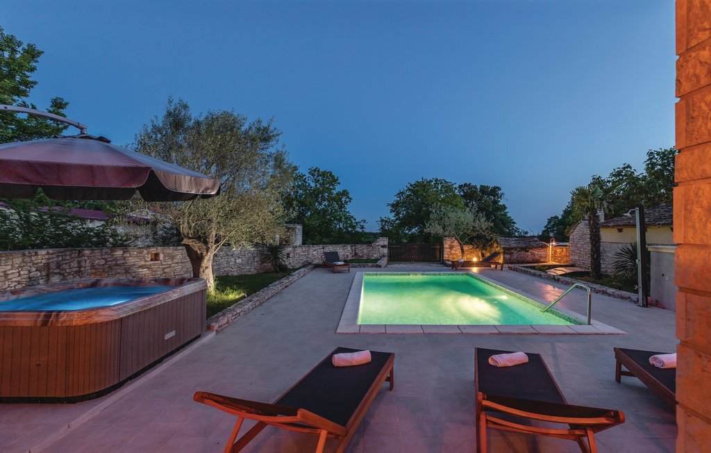 Bien-être à l'extérieur : Location de vacances disposant de chaises-longues et d'un ou plusieurs équipements tels que piscine extérieure, jacuzzi extérieur, lit à baldaquin de jardin etc...