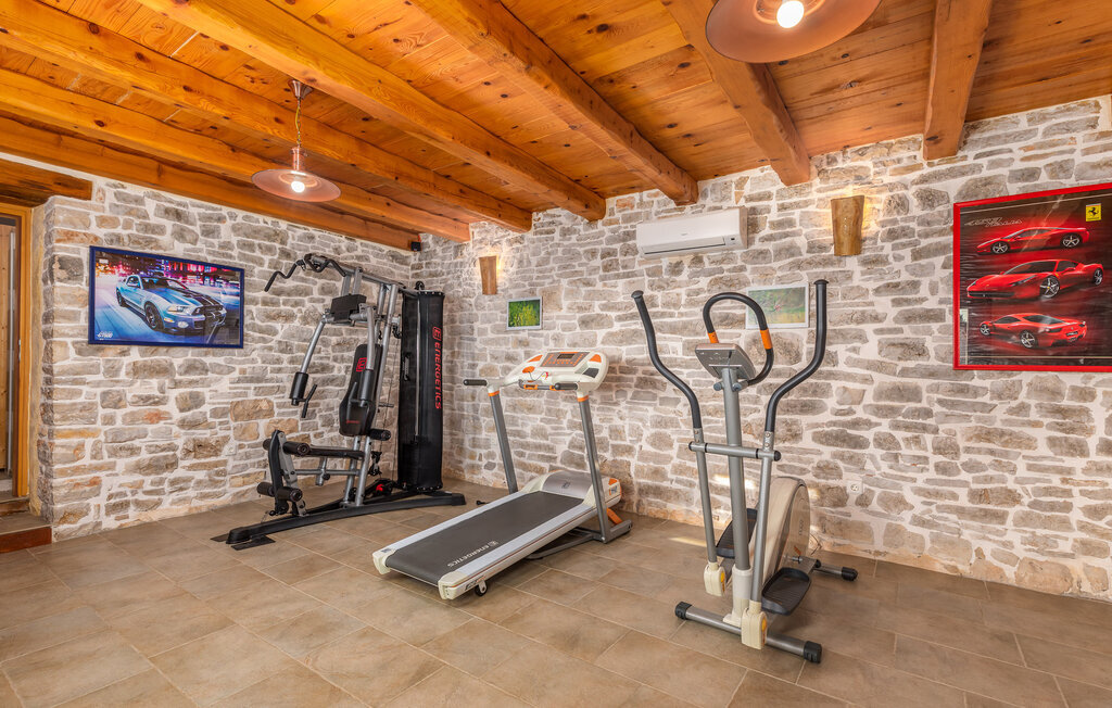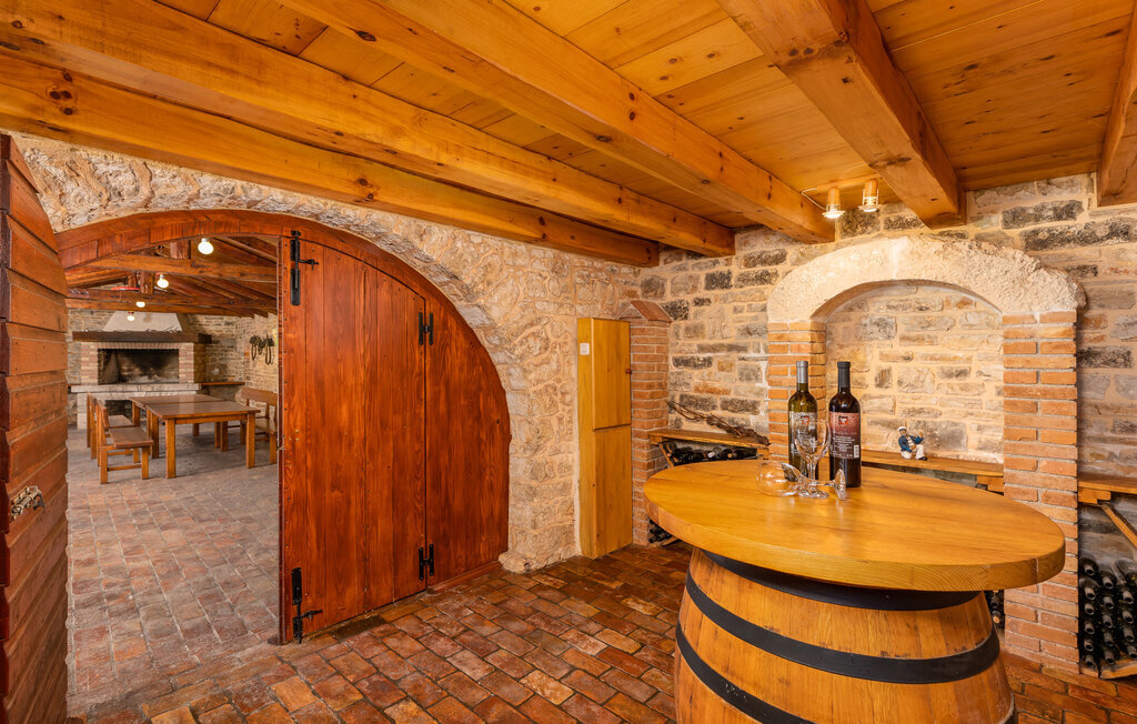 Cette maison de vacances extrêmement rustique de grande capacité, divisée en trois propriétés, se trouve en bordure d'un village typique d'Istrie. Les murs centenaires, qui ont été entièrement restaurés, vous offrent intimité et sécurité. Dans la première maison, au rez-de-chaussée, se trouve un grand salon avec cuisine et une salle à manger rustique. Les chambres à coucher confortables sont réparties sur les étages. Au rez-de-chaussée de la deuxième maison, vous pouvez vous retrouver pour vous divertir et passer des moments ensemble dans une salle de loisirs avec un petit bar, un billard, un pikado ou un baby-foot. Une oasis de bien-être pour se détendre avec un sauna, ainsi qu'une salle de fitness pour les plus actifs d'entre vous sont également à disposition. Ici, il y en a pour tous les goûts. Aux étages supérieurs de la deuxième maison se trouvent trois autres chambres à coucher, chacune avec sa propre salle de bain. Les deux maisons sont reliées par un escalier extérieur. Sur le terrain partiellement fermé (4500 m2), la grande piscine extérieure domine. Vous pourrez y profiter d'un bain bienvenu les jours de grande chaleur. Un coin de jeu pour les petits et une grande cuisine d'été complètent l'image idyllique de l'ensemble. Les environs boisés invitent à des promenades relaxantes. Cette maison de vacances de rêve vous offrira certainement des vacances reposantes et inoubliables. Visitez la ville médiévale de Barban ! Barban a beaucoup à offrir : Des palais, des églises, des monuments baroques et gothiques, des fresques et des inscriptions en glagolitique, ainsi que des remparts. Ce riche patrimoine culturel fait de la ville une région intéressante pour les amateurs de culture.