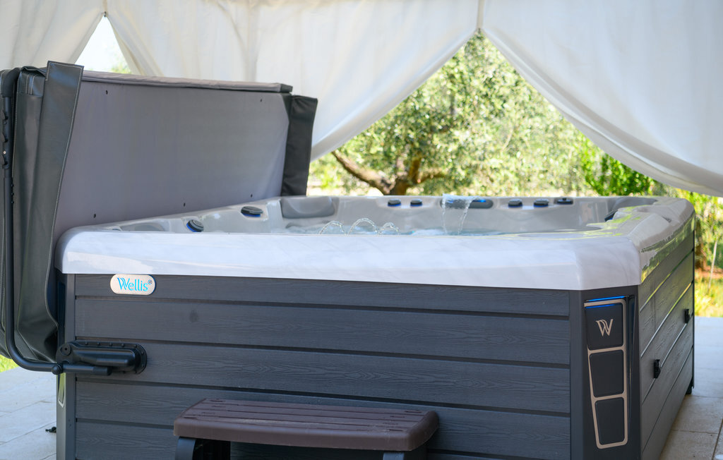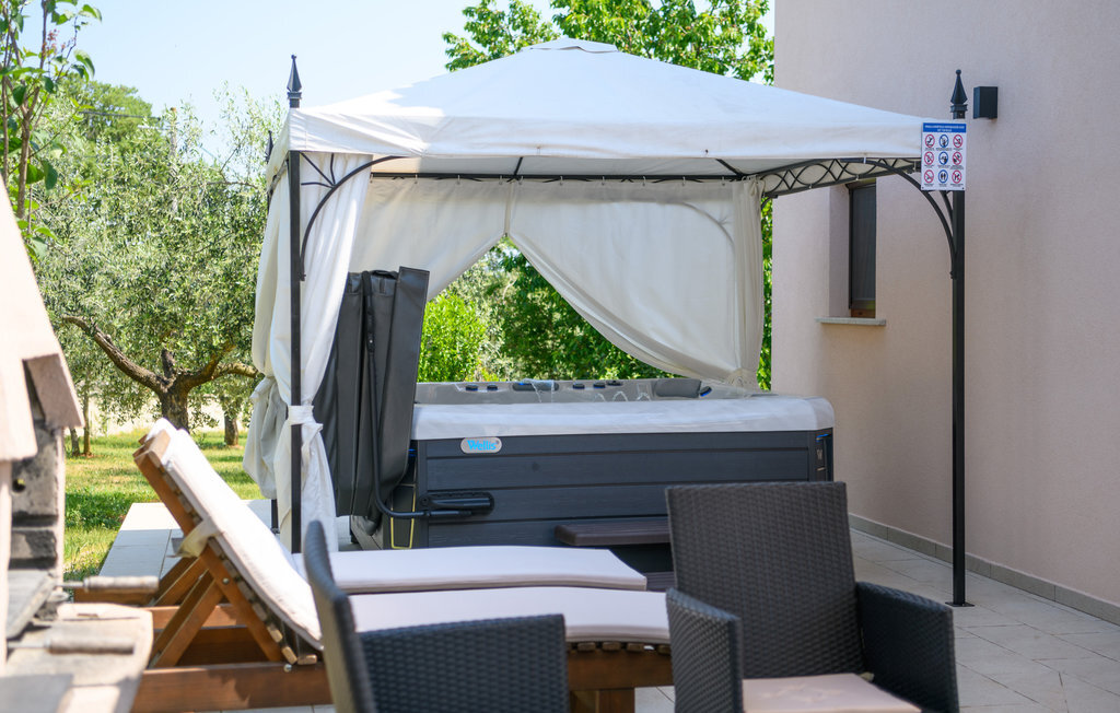 Bien-être à l'extérieur : Location de vacances disposant de chaises-longues et d'un ou plusieurs équipements tels que piscine extérieure, jacuzzi extérieur, lit à baldaquin de jardin etc...