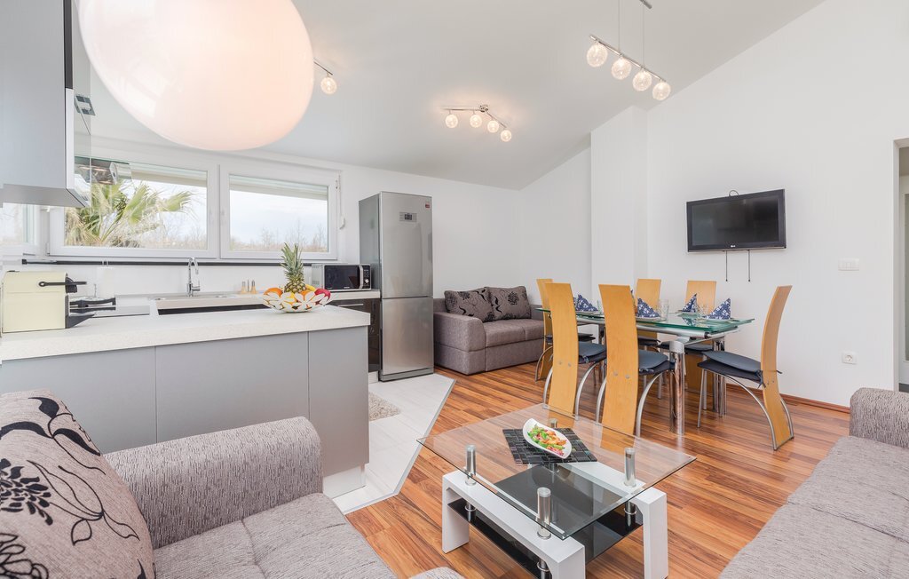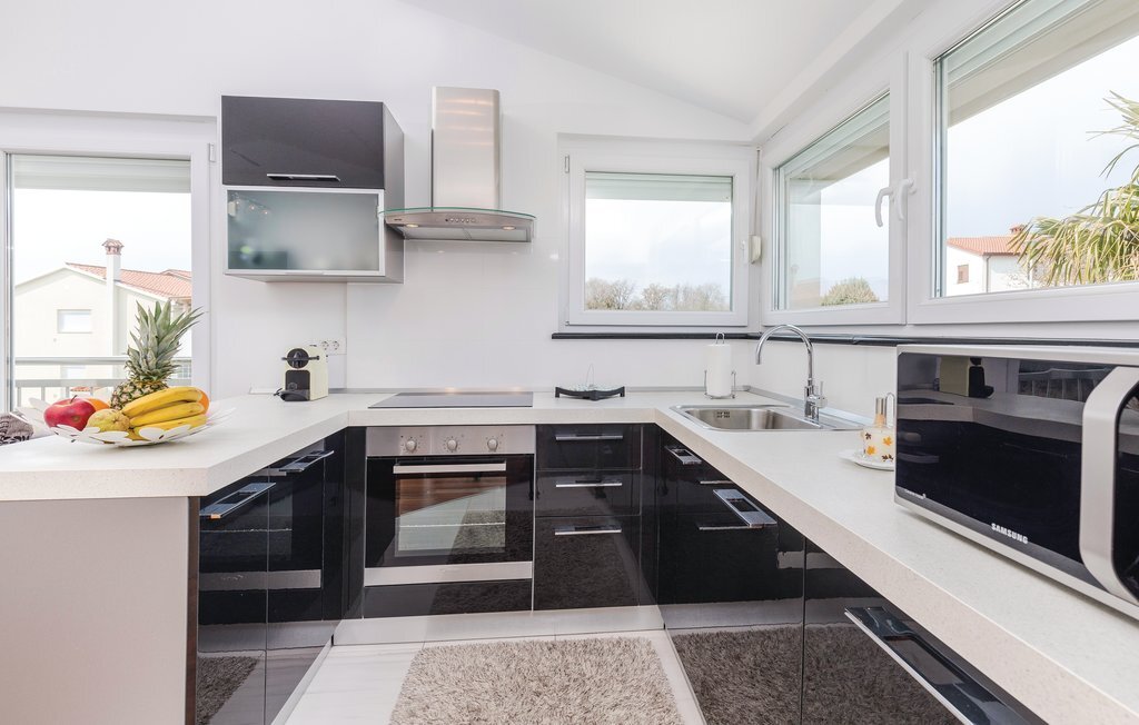 Cette maison de vacances avec piscine se trouve à Beneci, une petite localité située entre Rabac et Labin. Elle se compose de deux unités d'habitation avec escalier extérieur. L'aménagement élégant contient tout ce qui est nécessaire pour des vacances agréables. Les contrastes habilement placés en noir et blanc ont un effet à la fois stimulant et relaxant. La piscine garantit le rafraîchissement et le plaisir de la baignade, le ping-pong et les fléchettes sont également disponibles pour le divertissement. Visitez la ville pittoresque de Labin, perchée sur une colline avec ses ruelles et ses bâtiments anciens. Depuis Rabac, vous pouvez faire des excursions en bateau vers les îles de Cres et Losinj.