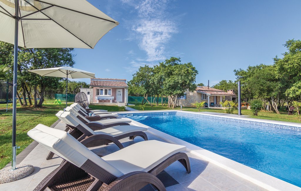 L'endroit parfait pour une pause pour les familles et les amis qui souhaitent passer d'agréables vacances ensemble. Vivez de belles vacances dans cette magnifique propriété située près de Rovinj. Elle se compose de deux maisons de vacances aménagées avec goût et d'un grand jardin clôturé avec piscine. Chaque maisonnette dispose d'une chambre à coucher séparée, d'une salle de bains, d'un salon climatisé et d'une terrasse couverte, dont l'une est équipée d'un barbecue. La piscine est harmonieusement située entre les deux maisons dans le jardin bien entretenu. La propriété est isolée et constitue donc une véritable oasis de verdure et de tranquillité. Profitez de la magie de la ville de Rovinj, lieu de vacances très apprécié pour ses nombreuses activités sportives et de loisirs, ses jolis stands, sa vieille ville romantique et ses délices culinaires.