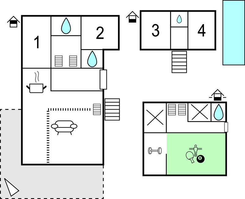 Location de vacances avec activités : Cette location de vacances comprend un ou plusieurs équipements de loisir (ping-pong, billard, baby-foot...)