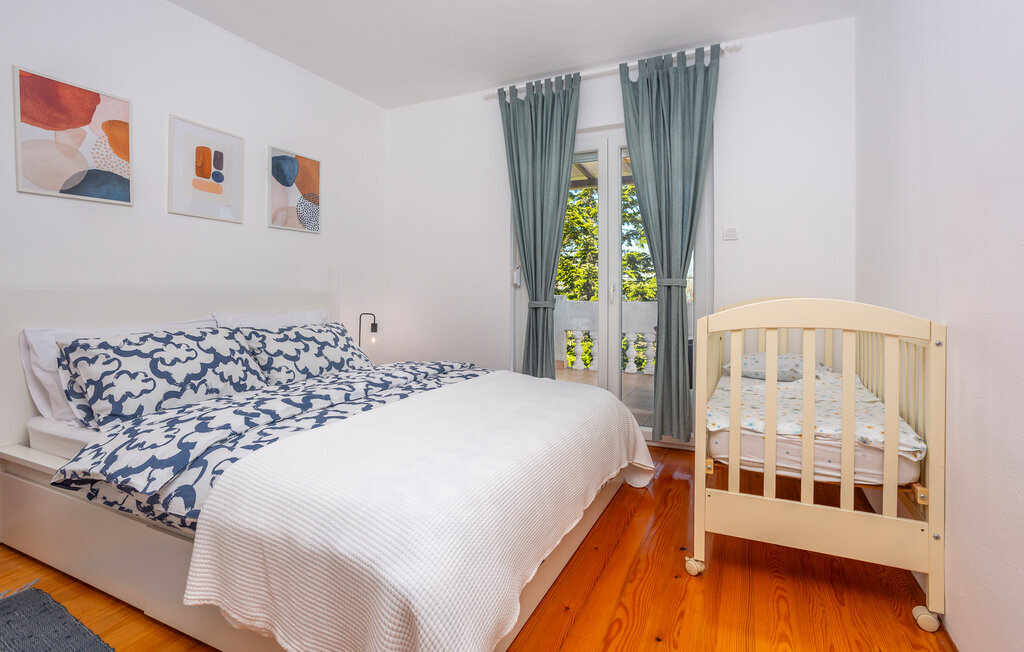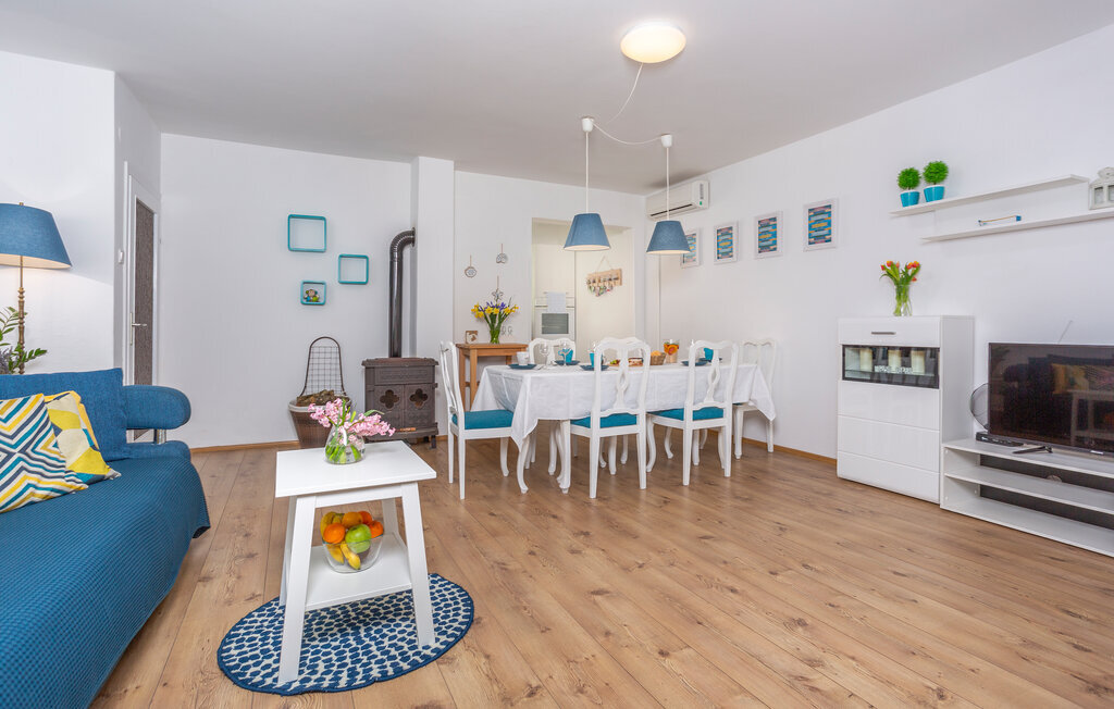Visitez les localités voisines comme Malinska, Silo et Vrbnik avec leurs plages de sable et de galets, leur promenade en bord de mer et leurs délicieuses spécialités méditerranéennes et de fruits de mer. Découvrez les nombreuses manifestations culturelles et les festivals d'été, buvez du vin local, baignez-vous dans les eaux claires et fraîches d'un bleu profond et faites des randonnées à pied ou à vélo dans les environs. En 23 minutes de route, vous atteindrez le centre culturel de Krk, où vous pourrez flâner dans la vieille ville, vous plonger dans l'histoire de l'île et vous promener dans les ruelles. Pour finir, vous pouvez goûter à la cuisine locale ou internationale, boire un petit verre de vin dans l'une des tavernes et admirer le coucher de soleil.