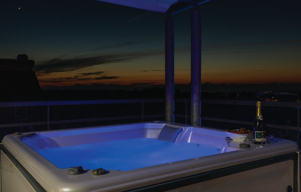 Bien-être à l'extérieur : Location de vacances disposant de chaises-longues et d'un ou plusieurs équipements tels que piscine extérieure, jacuzzi extérieur, lit à baldaquin de jardin etc...