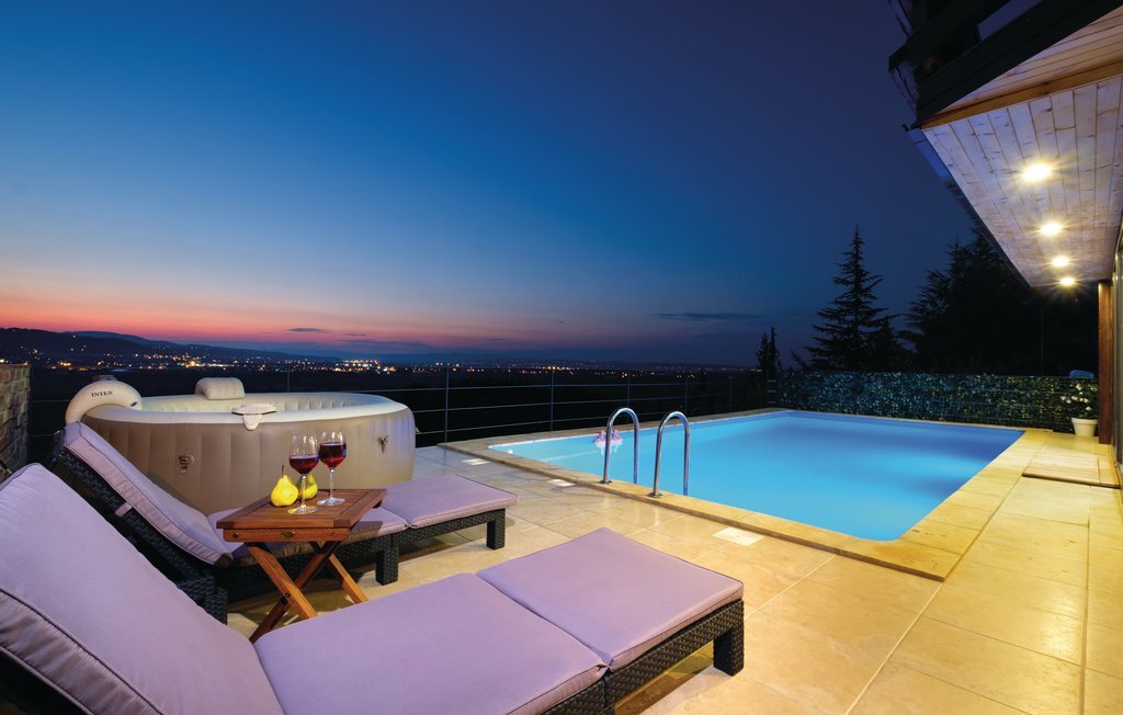 Bien-être à l'extérieur : Location de vacances disposant de chaises-longues et d'un ou plusieurs équipements tels que piscine extérieure, jacuzzi extérieur, lit à baldaquin de jardin etc...