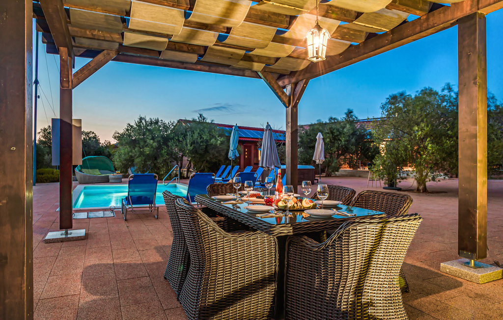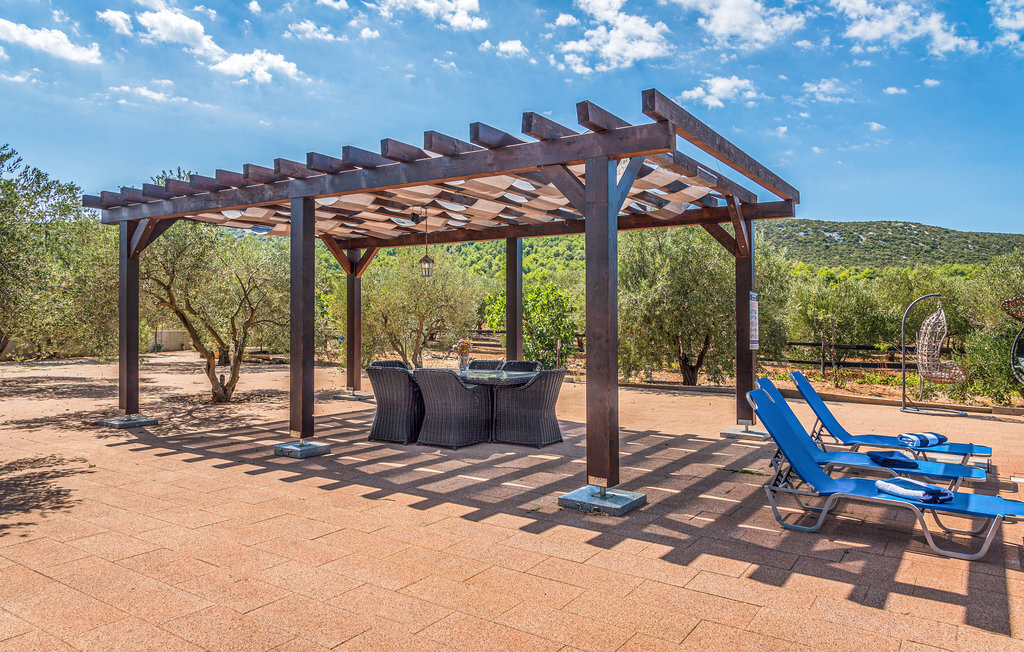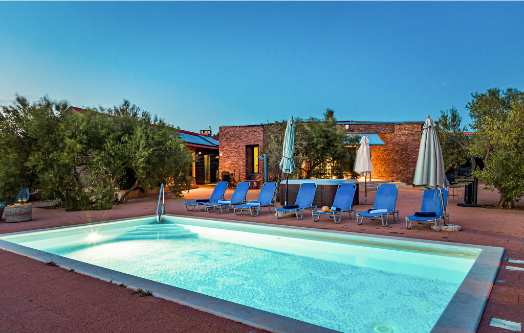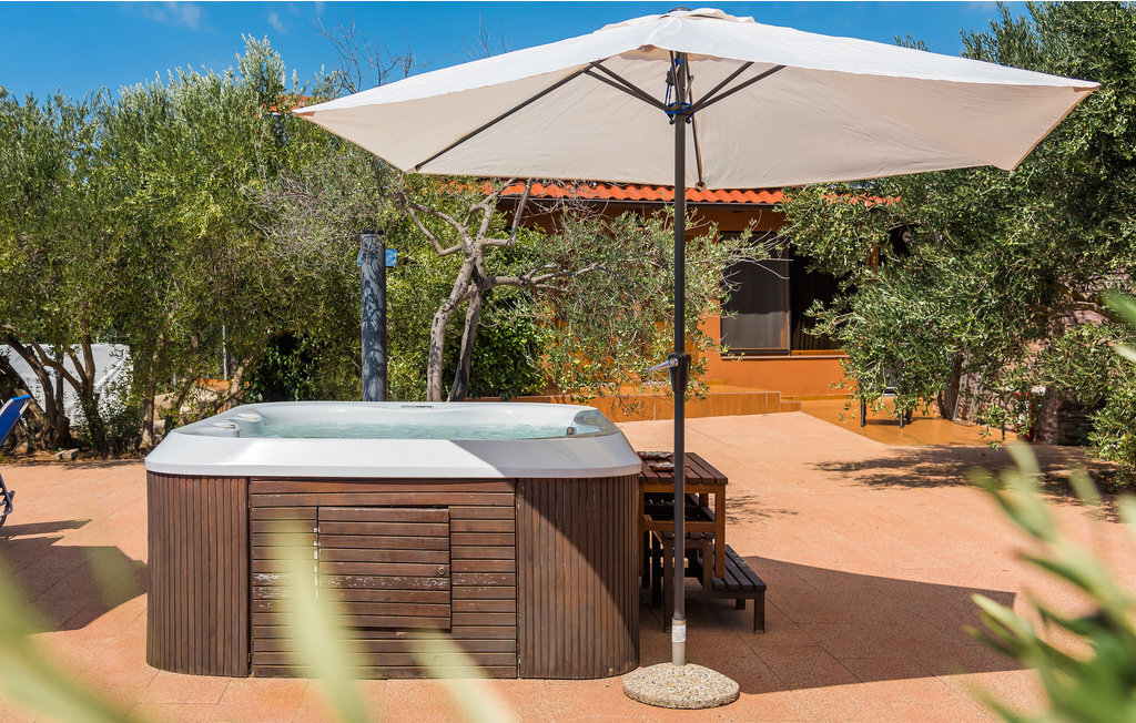Bien-être à l'extérieur : Location de vacances disposant de chaises-longues et d'un ou plusieurs équipements tels que piscine extérieure, jacuzzi extérieur, lit à baldaquin de jardin etc...