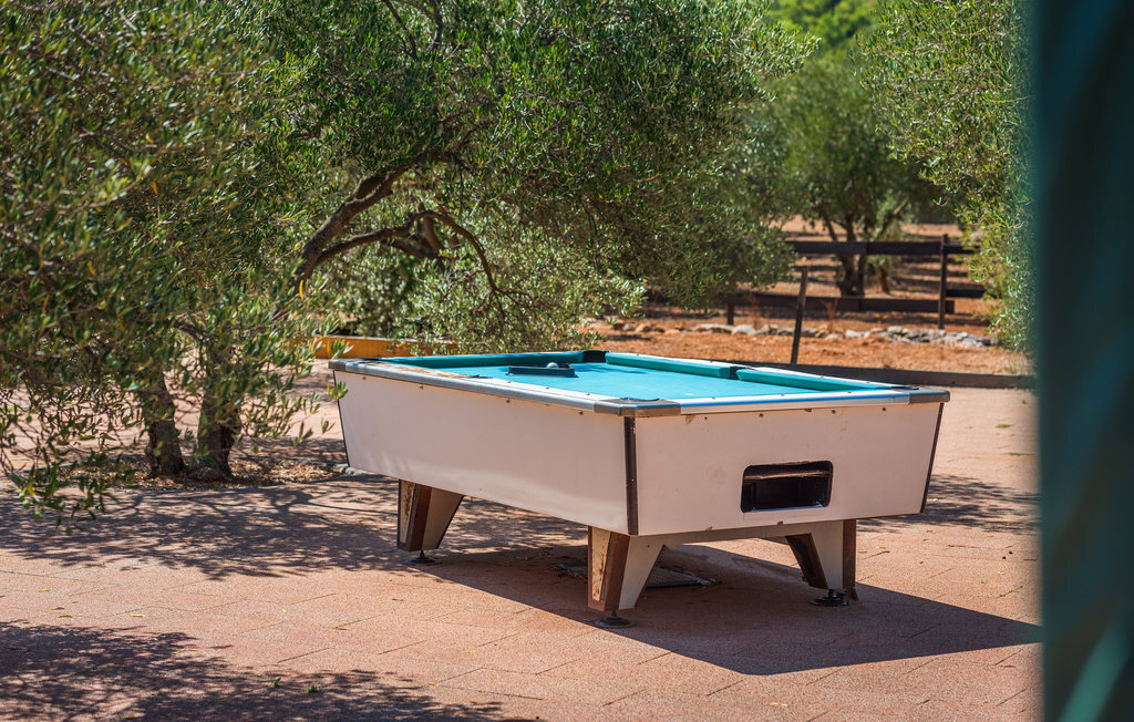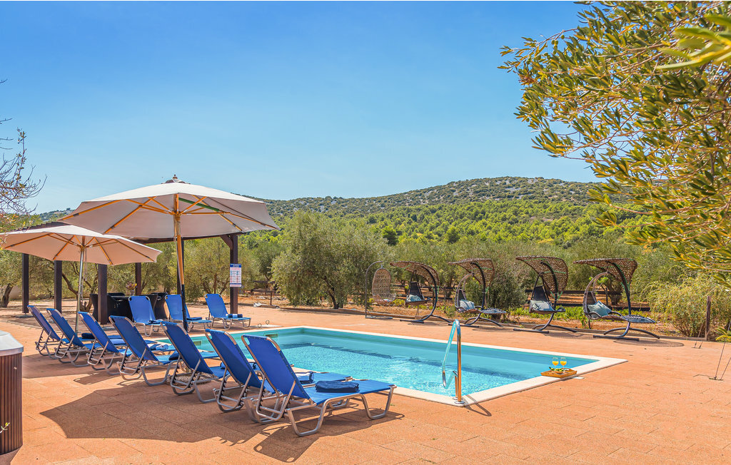 Le village d'Ivinj est situé entre Tribunj et Tisno et à côté de l'île de Murter. La maison de vacances se trouve en dehors de toute construction et offre ainsi beaucoup de calme et de tranquillité. Dans un rayon d'environ 2 km, il y a des plages naturelles attrayantes et isolées auxquelles vous pouvez vous rendre à vélo, à moto, en voiture électrique, à cheval ou même à pied. La propriété isolée offre des conditions idéales pour monter à cheval dans une nature qui s'étend comme à l'infini. Devant la propriété d'environ 20.000 m², il y a un hippodrome avec une piste de course de chevaux et une école d'équitation où vous pouvez prendre des leçons d'équitation sur des chevaux arabes de pure race. Partez également à l'aventure sur des pistes de motocross et de vélo. Les ressources naturelles sont exploitées, notamment l'eau potable qui provient d'un puits d'environ 80 mètres de profondeur. La piscine et le jacuzzi sont également remplis avec cette eau. L'électricité est produite par des panneaux solaires ainsi que par un moulin à vent. La propriété mentionnée se compose de deux maisons séparées, situées l'une à côté de l'autre et qui sont louées ensemble. Elles sont donc idéales pour plusieurs familles ou un groupe d'amis qui souhaitent passer des vacances ensemble. Une maison s'étend sur deux étages, le sous-sol et le rez-de-chaussée, et dispose d'un intérieur agréable. L'escalier extérieur mène à l'étage supérieur. La deuxième maison se compose d'un étage qui abrite deux chambres à coucher, deux salles de bains, une pièce avec du matériel d'équitation, un salon ouvert et une cuisine d'été avec une grande cheminée. Les propriétaires de la maison mettent leur propre équipement à la disposition des pêcheurs titulaires d'un permis de pêche. Si la partie de pêche a été fructueuse, les propriétaires de la maison sont prêts à vous montrer leur manière traditionnelle de préparer le poisson.