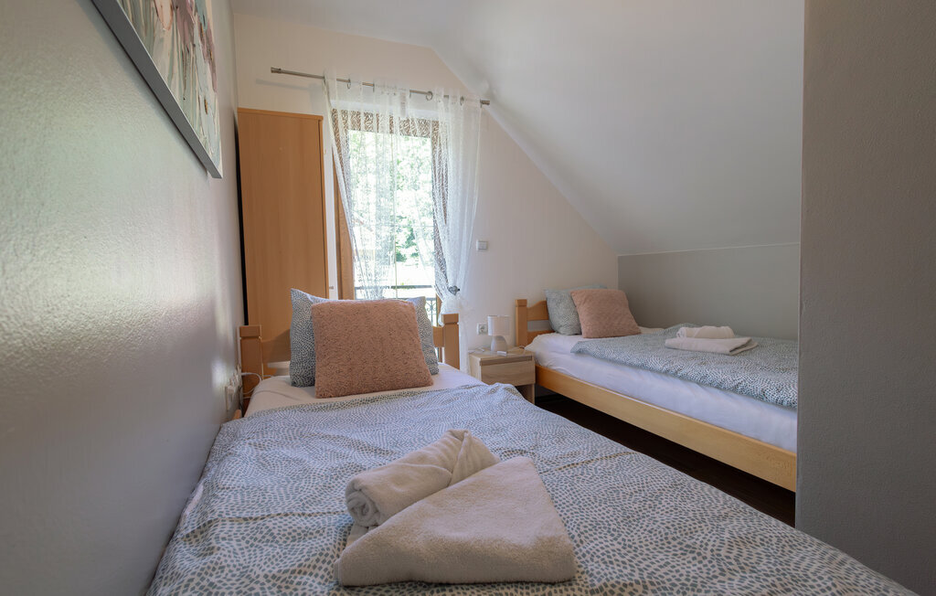 Passez des vacances idylliques au cœur du parc naturel de Papuk. Cette belle maison de vacances pour 8 personnes dispose de sa propre piscine, d'un jacuzzi pour 6 personnes et de son propre sauna. La salle de séjour est aménagée dans le style slave traditionnel et dispose d'une grande télévision et d'une cheminée ouverte. La maison a une surface habitable de 100 m² et le terrain a même une superficie de 900 m². Vous pourrez vous y installer confortablement sur les chaises longues et faire un barbecue le soir.