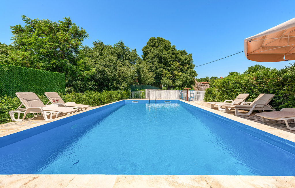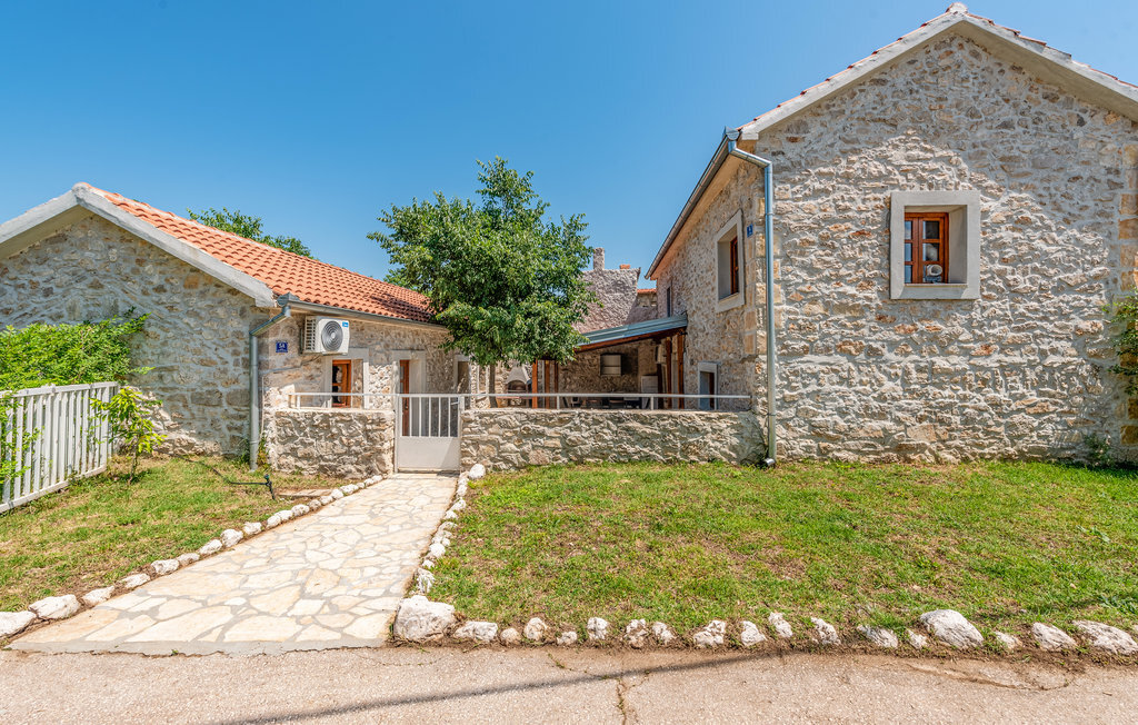 Cette fantastique maison en pierre est située dans le cadre verdoyant d'un écovillage sur un terrain clôturé et se compose de deux maisons. La propriété a subi une cure de rajeunissement et brille de mille feux, à l'intérieur comme à l'extérieur. La petite maison se compose d'une cuisine/salle à manger, d'une salle de bain et d'une chambre à coucher, tandis que la grande maison comprend une cuisine/salle à manger, trois chambres à coucher et deux salles de bain. À l'extérieur de la cour, à environ 5 mètres, une piscine privée est à votre disposition. À l'intérieur de l'écovillage, en direction des vastes champs, il y a une grande tonnelle qui est utilisée en commun. La ville la plus proche est Biodgrad, connue pour ses deux ports de plaisance. La vieille ville de Zadar et le parc naturel du lac Vrana valent également le détour.