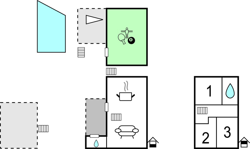 Location de vacances avec activités : Cette location de vacances comprend un ou plusieurs équipements de loisir (ping-pong, billard, baby-foot...)