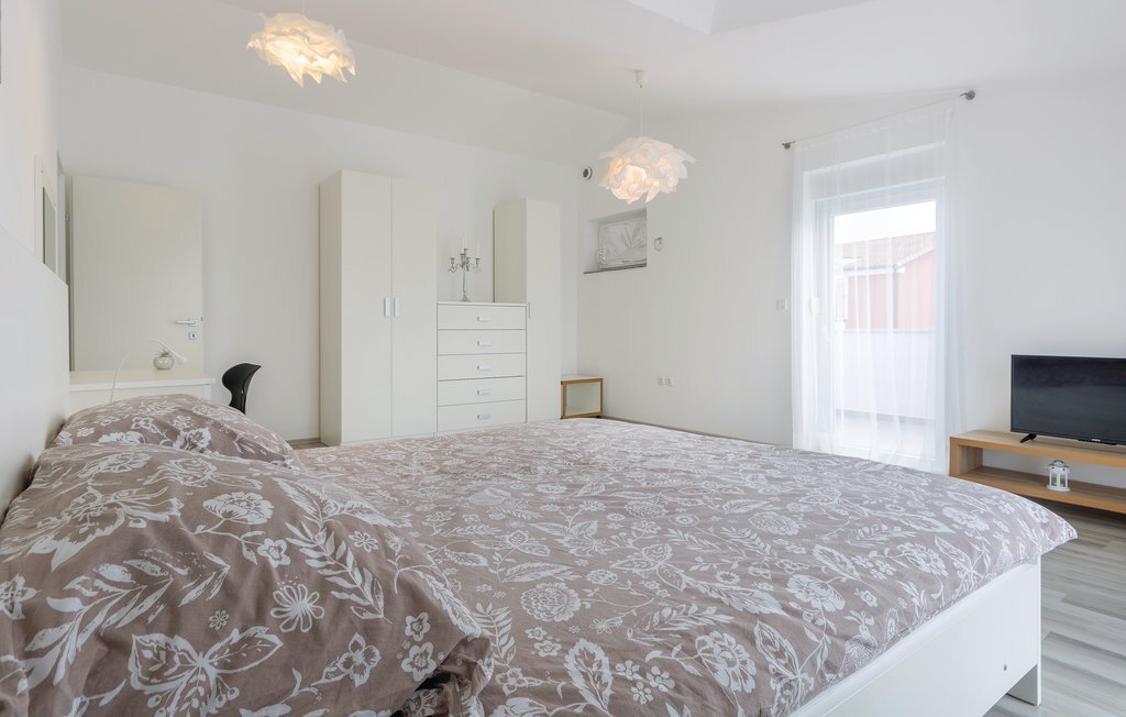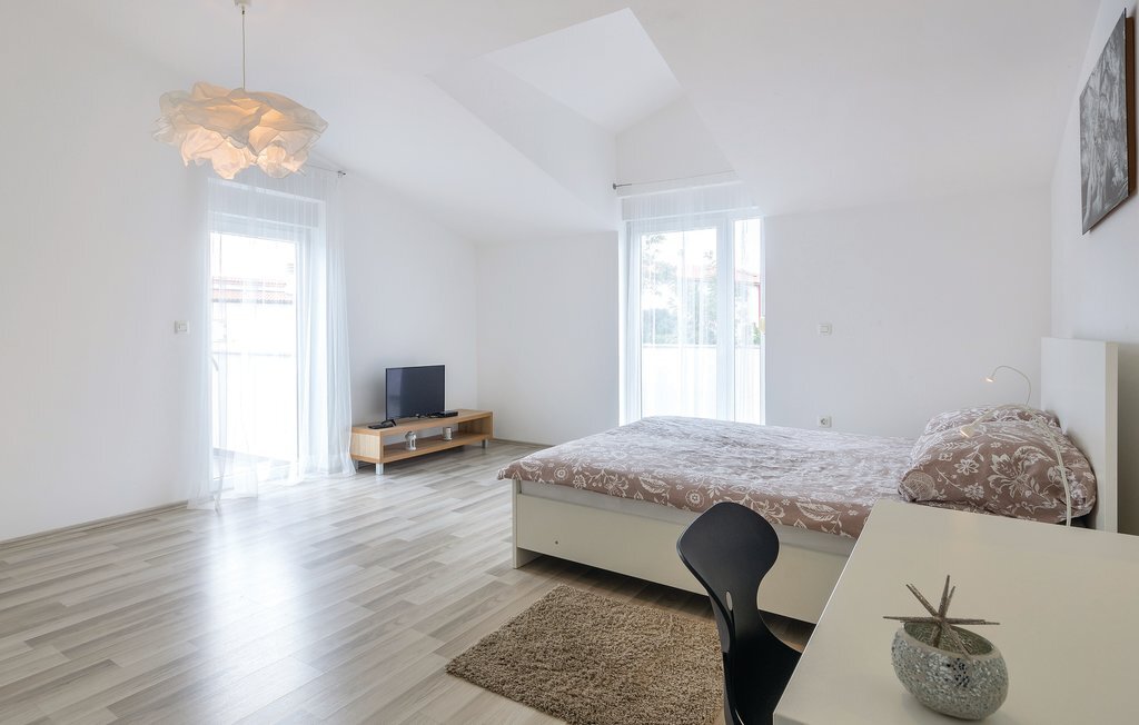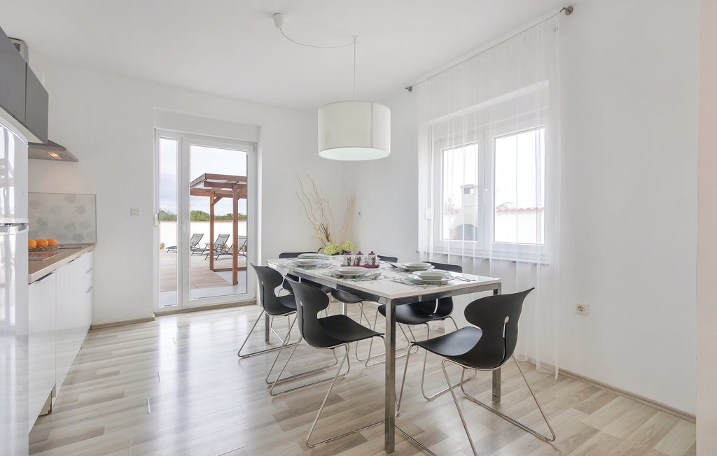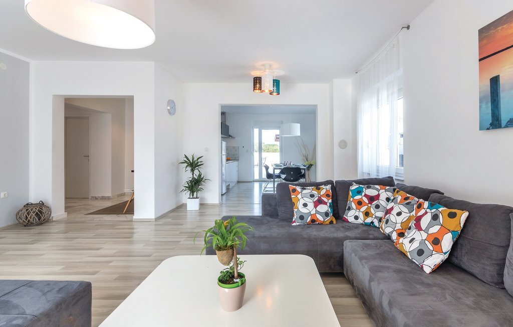Cette maison de vacances attrayante se trouve dans la banlieue de la ville de Pula, sur un terrain clôturé. L'intérieur spacieux, lumineux et aménagé de façon moderne s'étend sur le rez-de-chaussée et le premier étage avec un toit en pente. Le point le plus bas est d'environ 50 cm. L'extérieur domine avec une piscine extérieure et l'espace extérieur correspondant, qui vous feront passer des moments inoubliables avec vos proches. Visitez les villes de Pula, Rovinj et Porec, qui proposent différents programmes d'été pour vous divertir. Explorez les magnifiques plages naturelles de cette région et passez des vacances inoubliables.