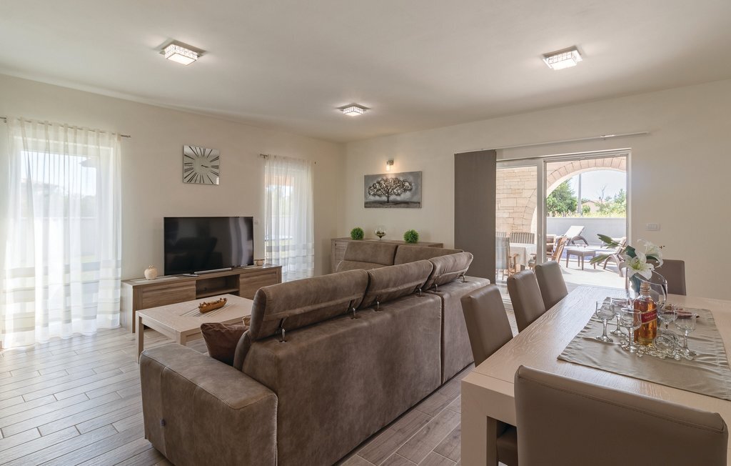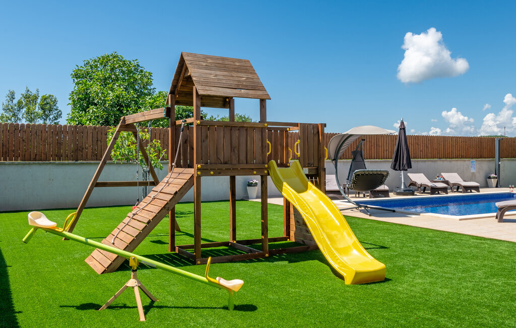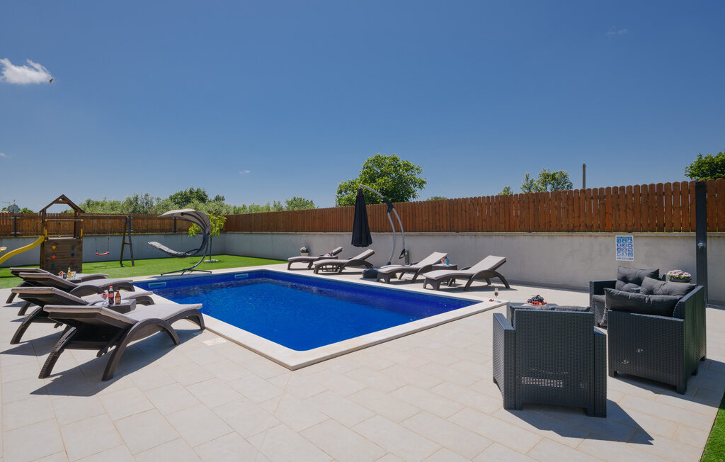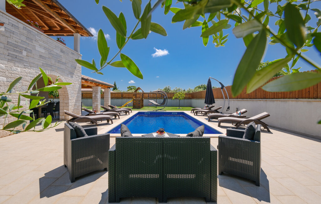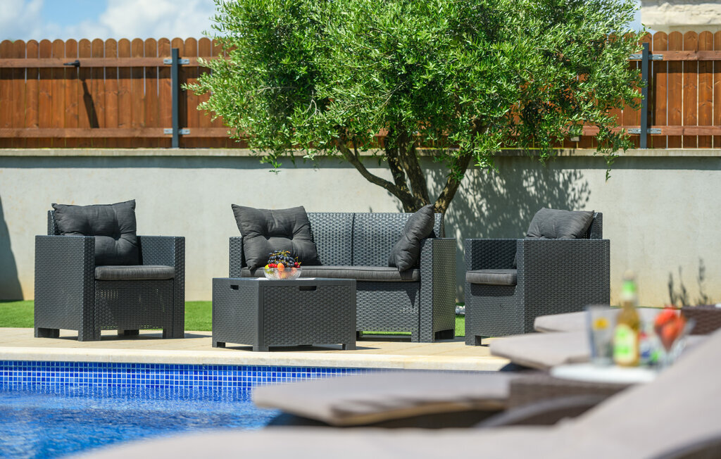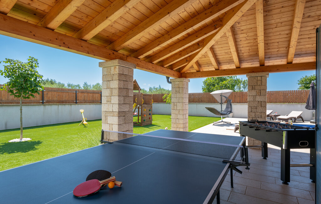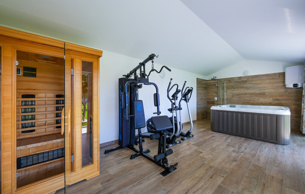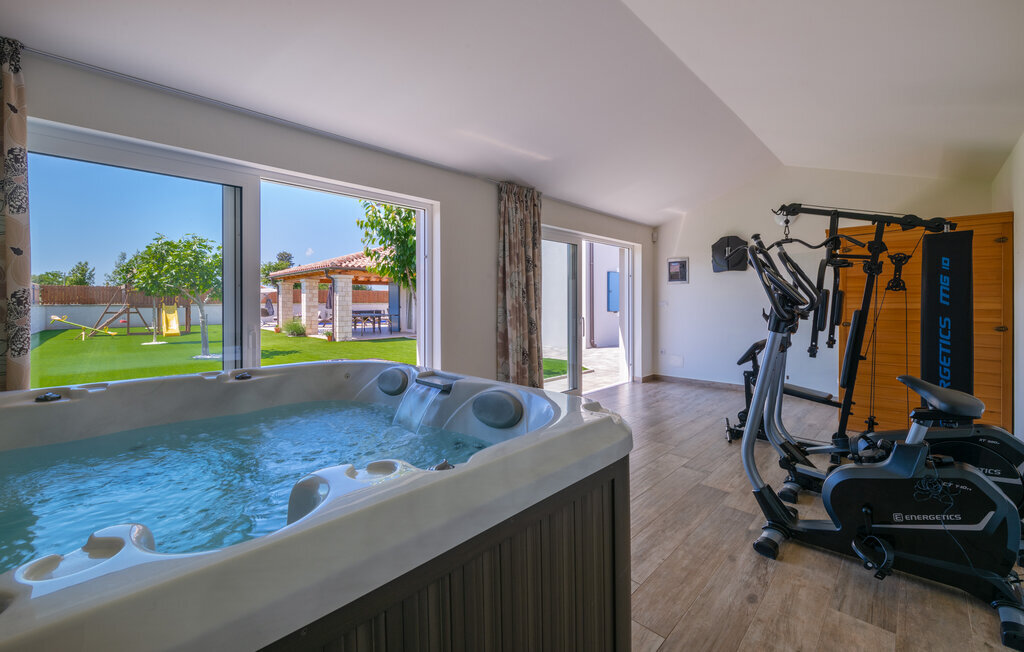 Cette magnifique maison de vacances avec piscine se trouve dans le petit village de Radeki Polje, à l'intérieur de l'Istrie. Spacieuse et confortablement aménagée, c'est le choix idéal pour passer des moments agréables entre amis ou en famille. Passez du temps sur la terrasse couverte, profitez du soleil et détendez-vous sur les chaises longues au bord de la piscine. Dans l'ambiance chaude et confortable du sauna, accordez-vous une pause et un moment de détente, et le massage bienfaisant du jacuzzi vous mettra dans un état d'esprit agréable. De nombreux jeux sont à la disposition des plus petits. Visitez l'amphithéâtre de la ville voisine de Pula.