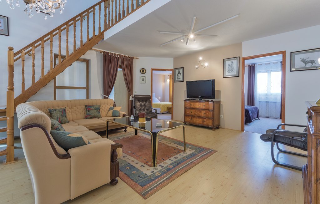 Passez d'agréables vacances dans cette belle maison de vacances à Pula. Du premier étage, un escalier extérieur mène au deuxième. Au rez-de-chaussée se trouve le garage avec de la place pour deux voitures. Sur la propriété, il y a aussi une cuisine d'été avec cheminée pour préparer de délicieuses spécialités. Dégustez-les avec du vin de production locale. Une petite piscine permet également de se rafraîchir. Visitez le centre-ville, où vous pourrez voir de nombreuses curiosités et assister à des manifestations intéressantes pendant les mois d'été.
