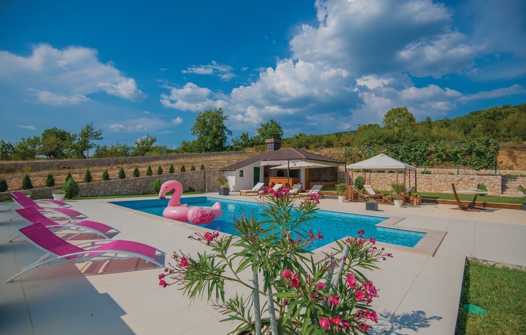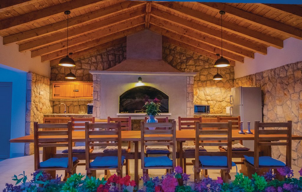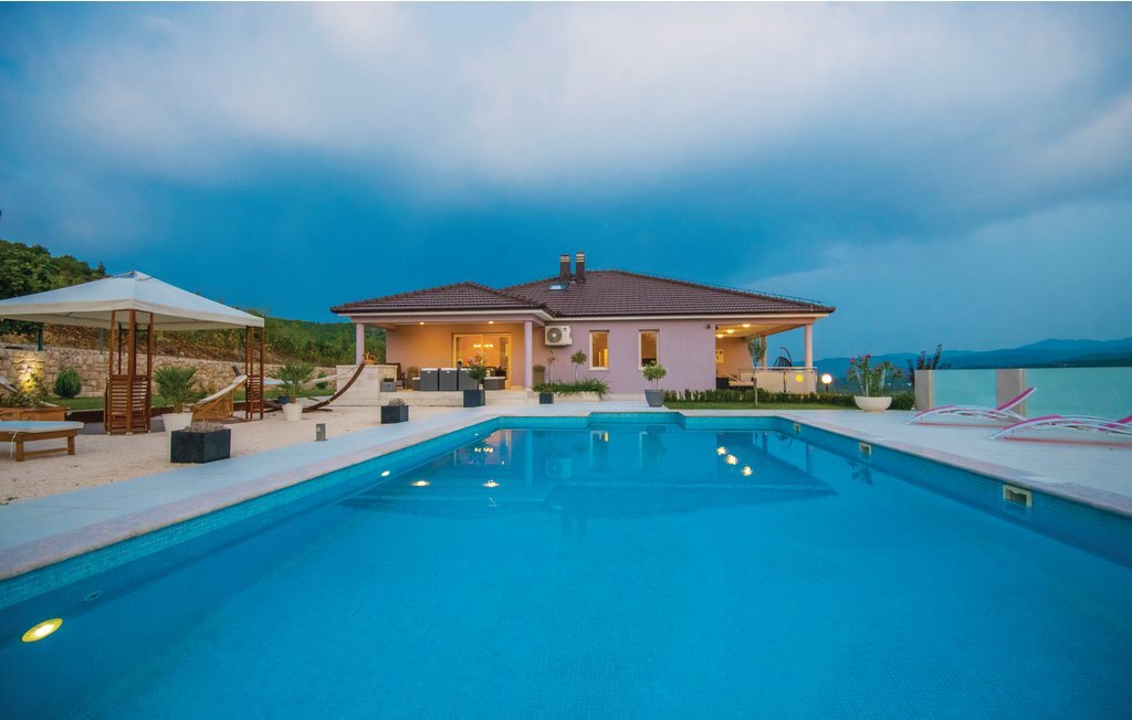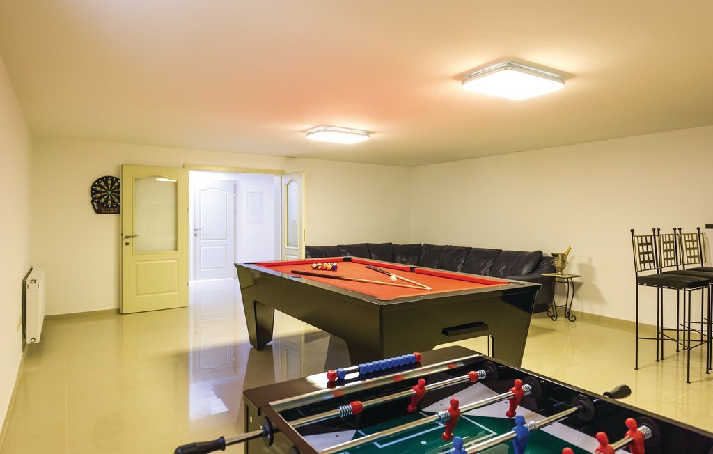 Si vous souhaitez vous échapper du stress quotidien et passer vos vacances entouré de la nature de l'arrière-pays dalmate, vous êtes ici au bon endroit. Cette belle maison de vacances a été placée sur un terrain clôturé, non loin de la ville d'Imotski, et vous offre des vacances agréables grâce à son équipement. Au sous-sol, la zone de bien-être avec jacuzzi, bain, sauna, table de massage peut être réservée moyennant des frais supplémentaires auprès de la propriétaire de la maison, une physiothérapeute. À cet étage se trouvent également une taverne avec une vinothèque et une salle avec une table de billard, un baby-foot et des fléchettes. Devant se trouve une grande piscine extérieure. Juste à côté se trouve la cuisine d'été avec une terrasse couverte. Le rez-de-chaussée se compose d'une cuisine, d'un salon avec cheminée intérieure ainsi que de trois chambres et deux salles de bains, le grenier (mansardé à 110 cm) de deux chambres. L'une d'entre elles est une chambre de passage et abrite la Nintendo Wii et la PlayStation. Les conditions sont donc réunies pour des vacances inoubliables de divertissement, de détente et de confort. En ce qui concerne l'emplacement, on peut noter que les vacances se déroulent à environ 700 m sous le lac Rouge et qu'il y a des pistes cyclables et des sentiers de randonnée à proximité. Non loin de là se trouvent également un restaurant, un petit magasin et la rivière Vrljika. Visitez la ville d'Imotski, où des manifestations sont organisées en été, et bien sûr les lacs Rouge et Bleu. Les plages de galets de la Riviera de Makarska sont accessibles après environ 30 minutes de voiture.