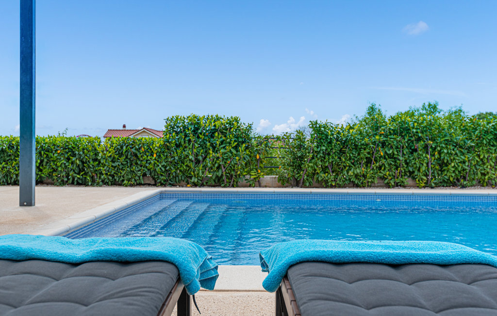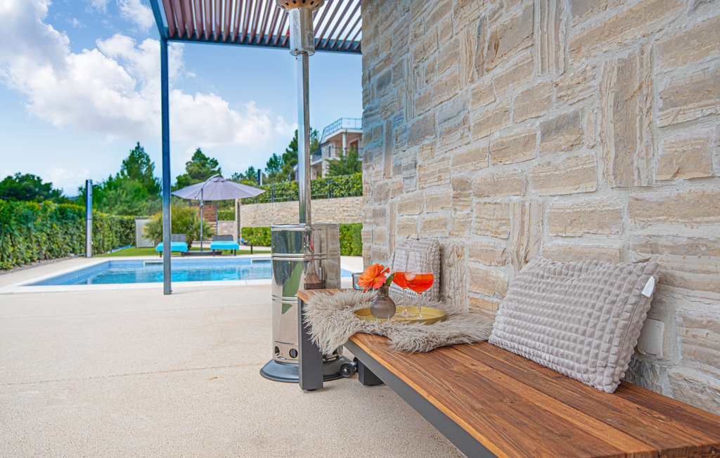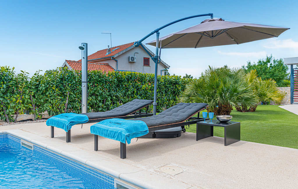 Bien-être à l'extérieur : Location de vacances disposant de chaises-longues et d'un ou plusieurs équipements tels que piscine extérieure, jacuzzi extérieur, lit à baldaquin de jardin etc...