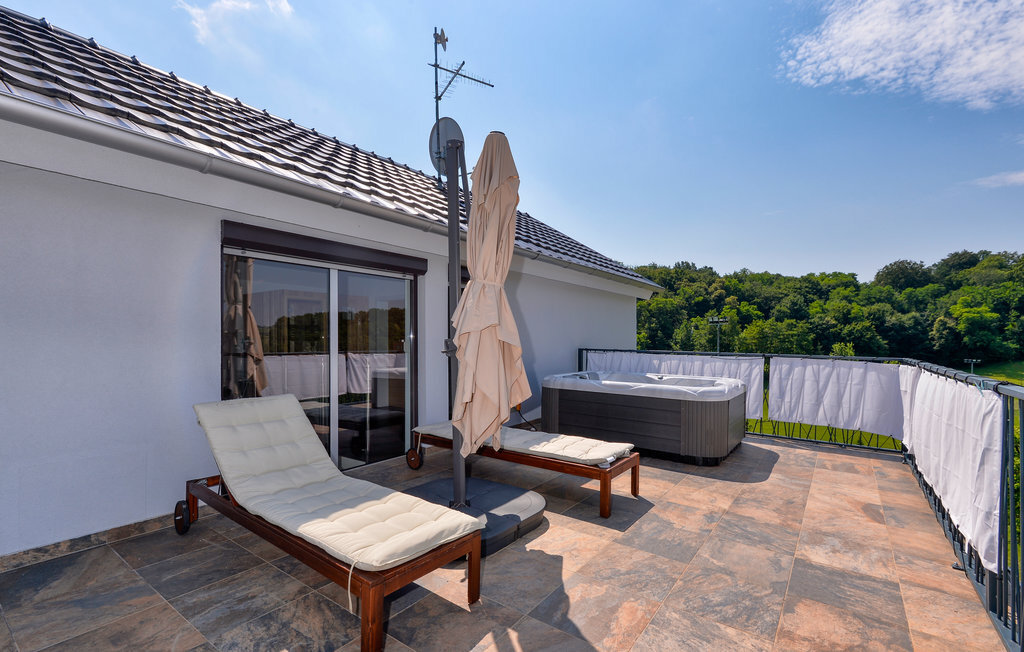 Bien-être à l'extérieur : Location de vacances disposant de chaises-longues et d'un ou plusieurs équipements tels que piscine extérieure, jacuzzi extérieur, lit à baldaquin de jardin etc...