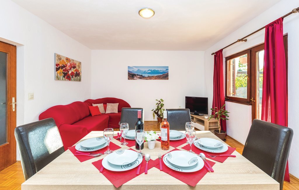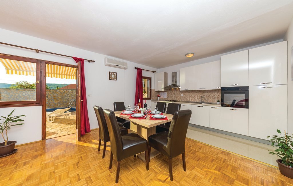 Cette maison de vacances avec piscine est située dans un environnement paisible et est idéale pour les familles et les couples qui souhaitent profiter de l'idylle d'un petit village. Elle dispose d'une grande terrasse à l'étage supérieur avec vue sur le paysage. Un magnifique solarium se trouve près de la piscine. À côté de la maison se trouve l'indispensable barbecue et derrière celui-ci, des jeux pour les enfants. L'hôte propose, sur accord préalable et contre paiement, de l'équitation, la location de jet-skis et de bateaux rapides, des transferts et des bons dans des restaurants proches. Le parc national de Krka, avec ses beautés naturelles uniques, se trouve à environ 25 km. La vieille ville de Trogir, inscrite au patrimoine mondial de l'UNESCO, n'est qu'à 15 km.