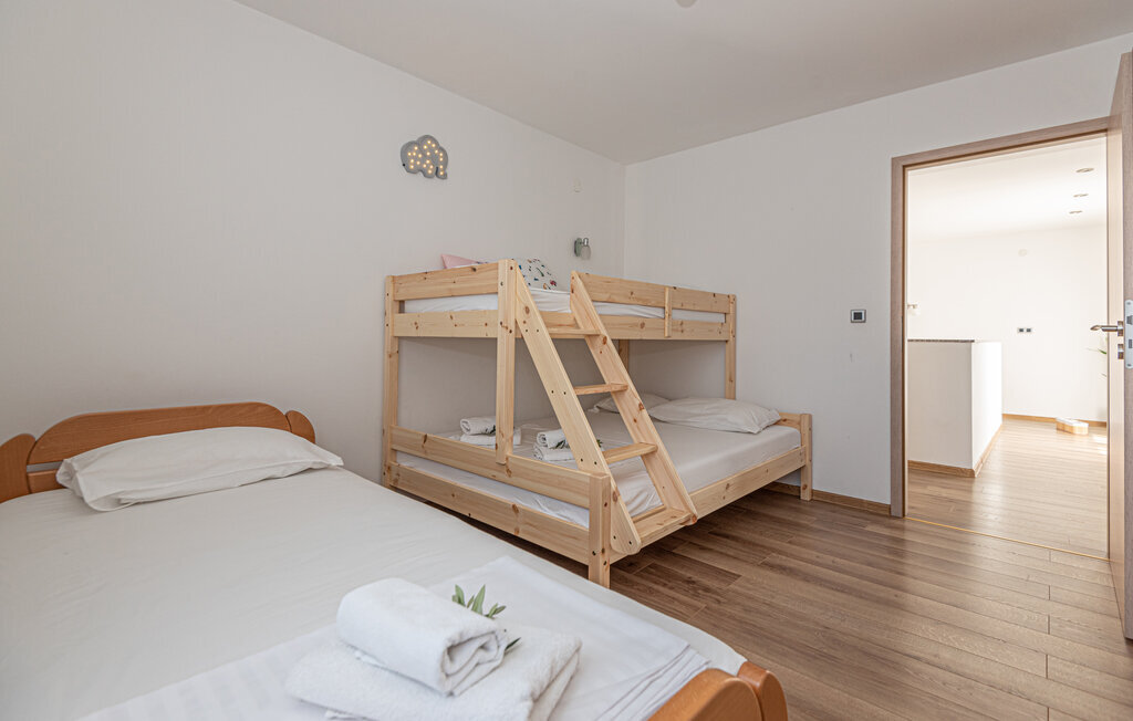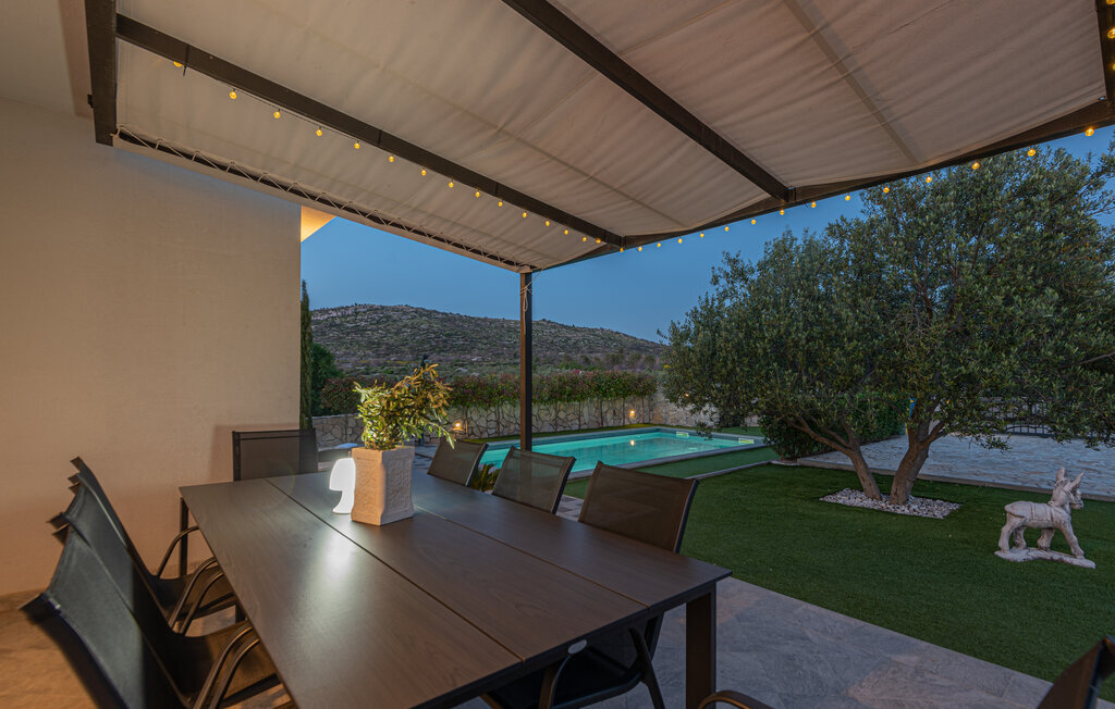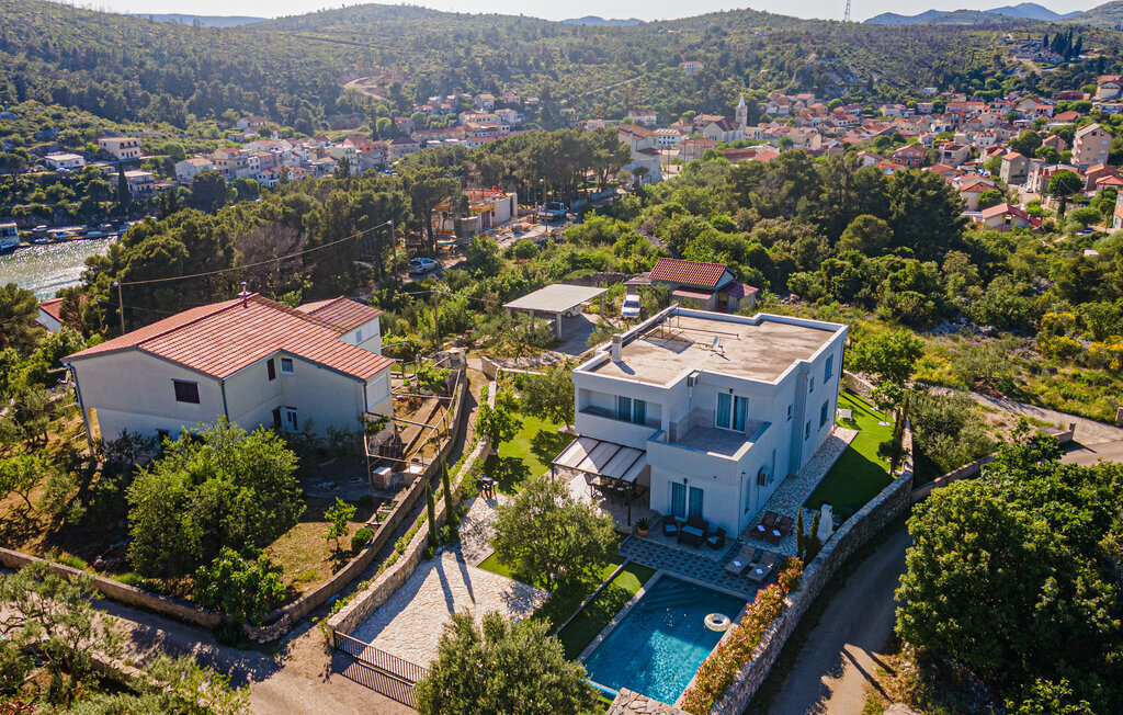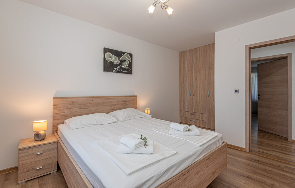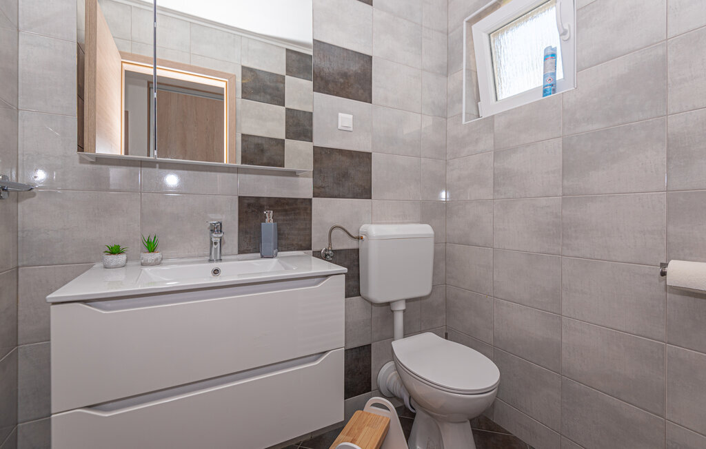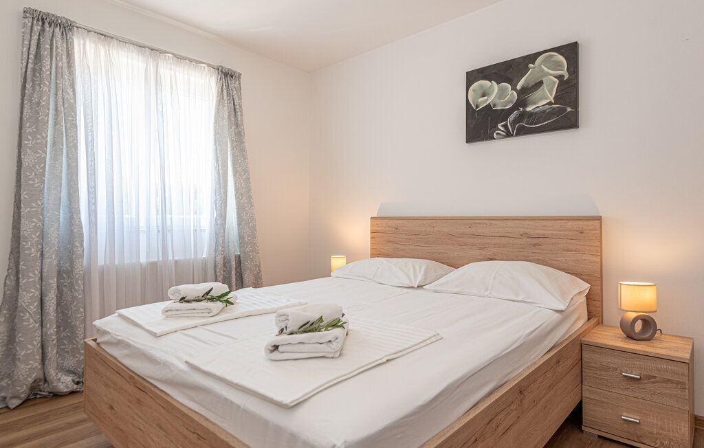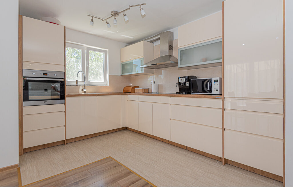 Cette belle maison de vacances avec piscine privée, aménagée avec goût, se trouve dans le village touristique calme de Zaton, près d'ibenik. Elle s'étend sur deux étages reliés par un escalier interne. Quelques marches descendent vers l'espace de vie. La longue plage de sable du village est accessible et donc parfaitement adaptée aux personnes souffrant de handicaps physiques. Une petite forêt de pins jouxte la plage et offre un peu de fraîcheur et d'ombre pendant les chaudes journées d'été. La ville de Zadar, la localité voisine de Nin et les parcs nationaux de Krka, Kornati et Paklenica sont des destinations intéressantes pour les excursions.