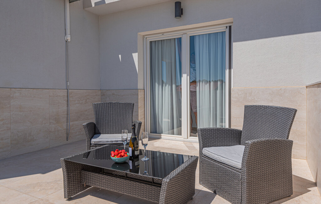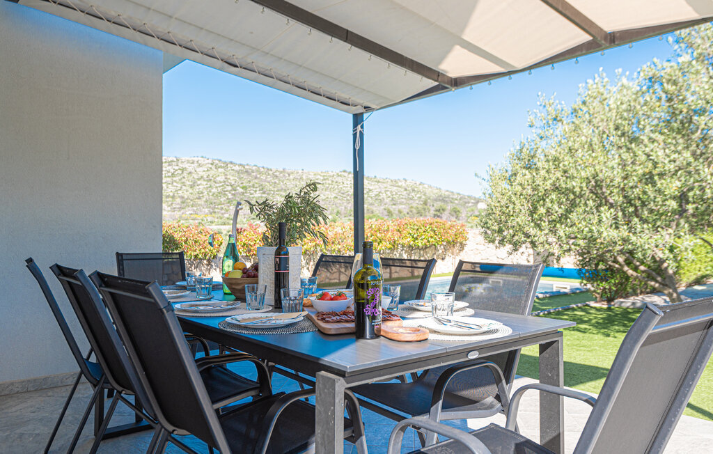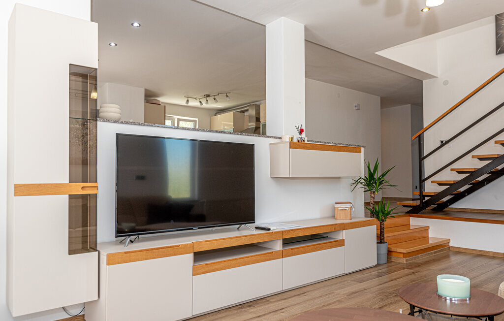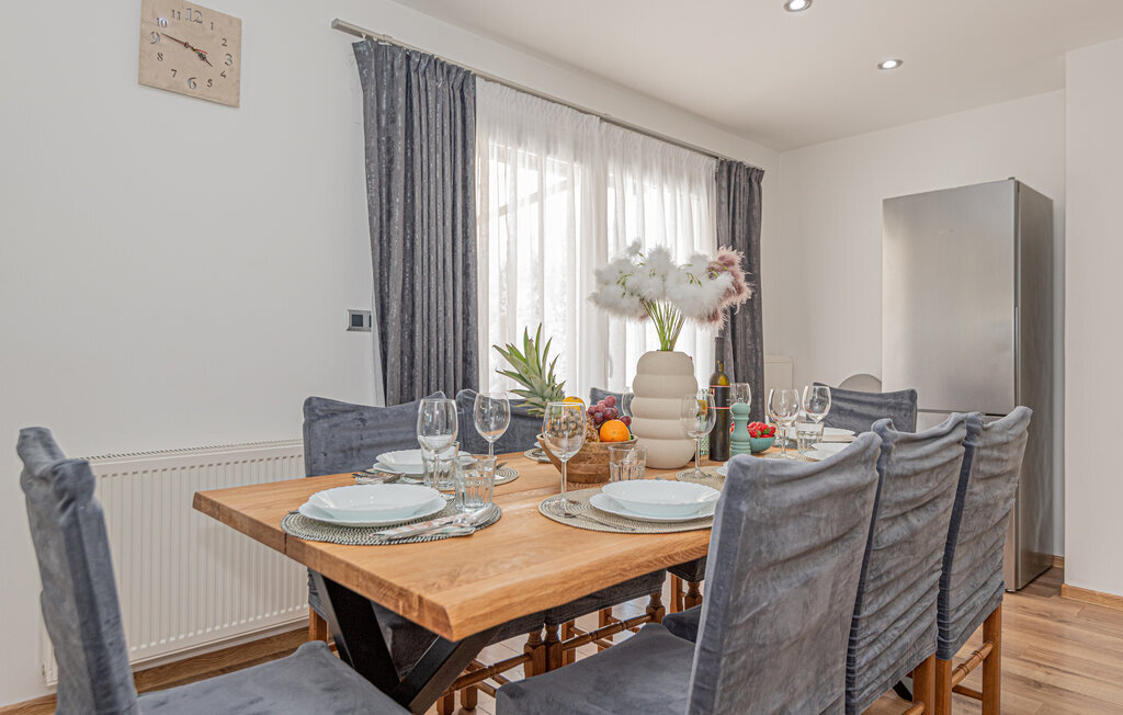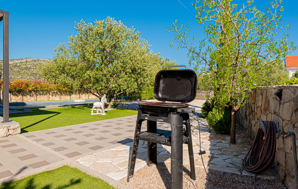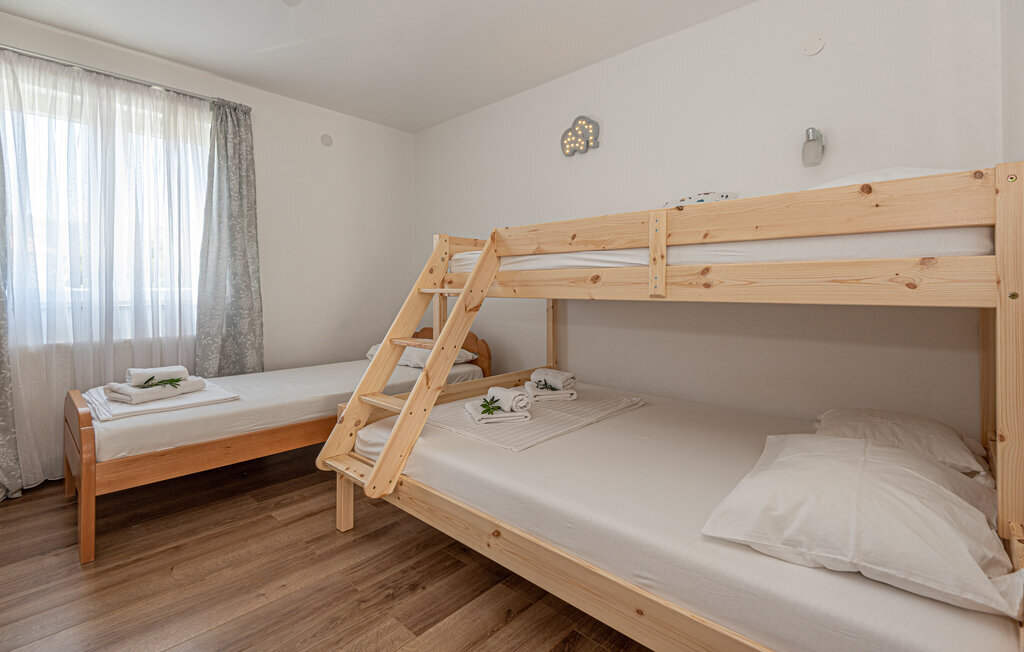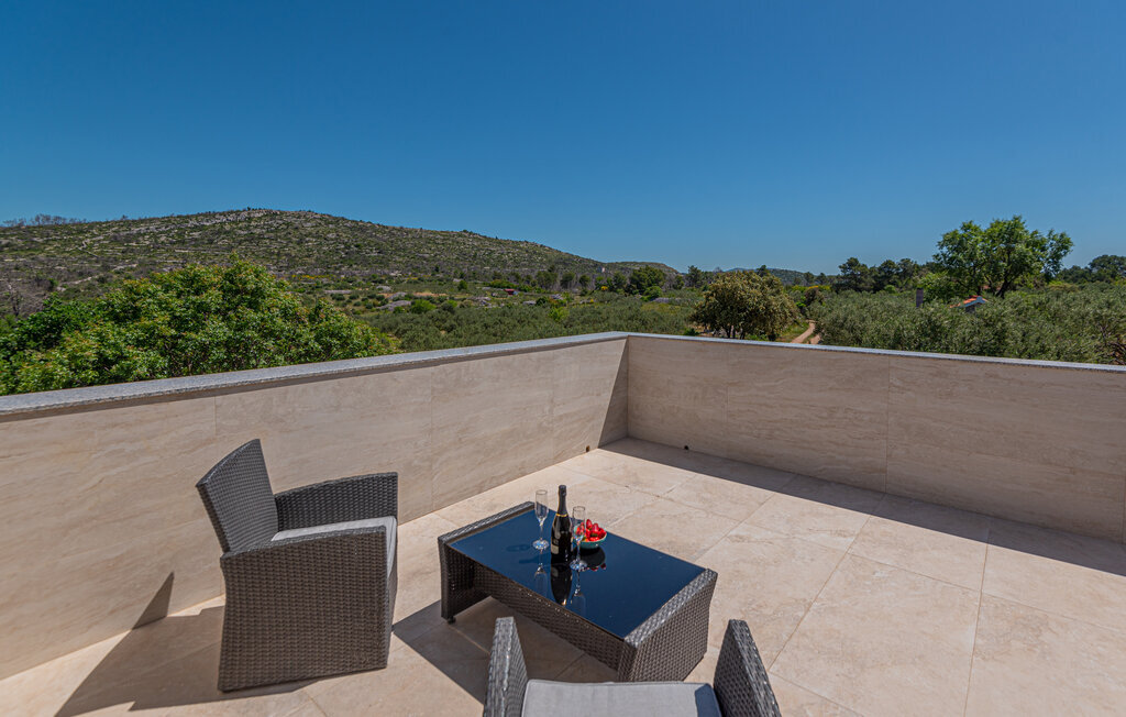 Cette belle maison de vacances avec piscine privée, aménagée avec goût, se trouve dans le village touristique calme de Zaton, près d'ibenik. Elle s'étend sur deux étages reliés par un escalier interne. Quelques marches descendent vers l'espace de vie. La longue plage de sable du village est accessible et donc parfaitement adaptée aux personnes souffrant de handicaps physiques. Une petite forêt de pins jouxte la plage et offre un peu de fraîcheur et d'ombre pendant les chaudes journées d'été. La ville de Zadar, la localité voisine de Nin et les parcs nationaux de Krka, Kornati et Paklenica sont des destinations intéressantes pour les excursions.