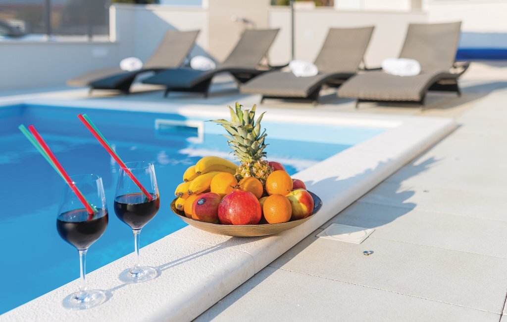Dans le petit village de Stivanica se trouve cette belle et confortable maison de vacances avec piscine, composée de deux étages. Au rez-de-chaussée, vous trouverez une salle de séjour spacieuse avec cuisine, tandis qu'à l'étage se trouvent les chambres à coucher. Lors des chaudes journées d'été, le rafraîchissement est garanti grâce à la fabuleuse piscine et, le soir, vous gâterez votre famille et vos amis avec de délicieuses grillades. L'endroit est entouré de petites criques et d'une mer propre, où vous pourrez partir à l'aventure et trouver un coin pour vous. Il est recommandé de visiter les anciennes villes d'ibenik, de Trogir et de Split.