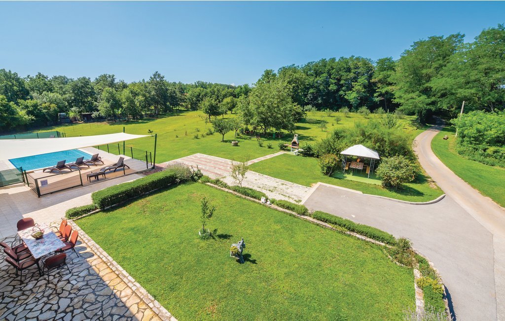 Cette belle maison de vacances se trouve à environ 20 minutes en voiture des plus belles plages de Rabac. Elle se compose de deux unités d'habitation confortables, dont l'une s'étend sur tout le rez-de-chaussée surélevé et l'autre sur le premier étage. Les unités d'habitation sont reliées entre elles par des escaliers extérieurs. La maison de vacances est idéale pour deux familles qui peuvent néanmoins conserver leur intimité. La piscine est remplie d'eau salée et dispose également de buses d'hydromassage. À l'arrière de la maison de vacances se trouve une taverne avec cheminée, appelée ici Konoba, dans laquelle vous pourrez passer de nombreux moments conviviaux.